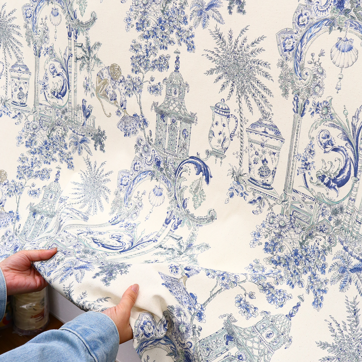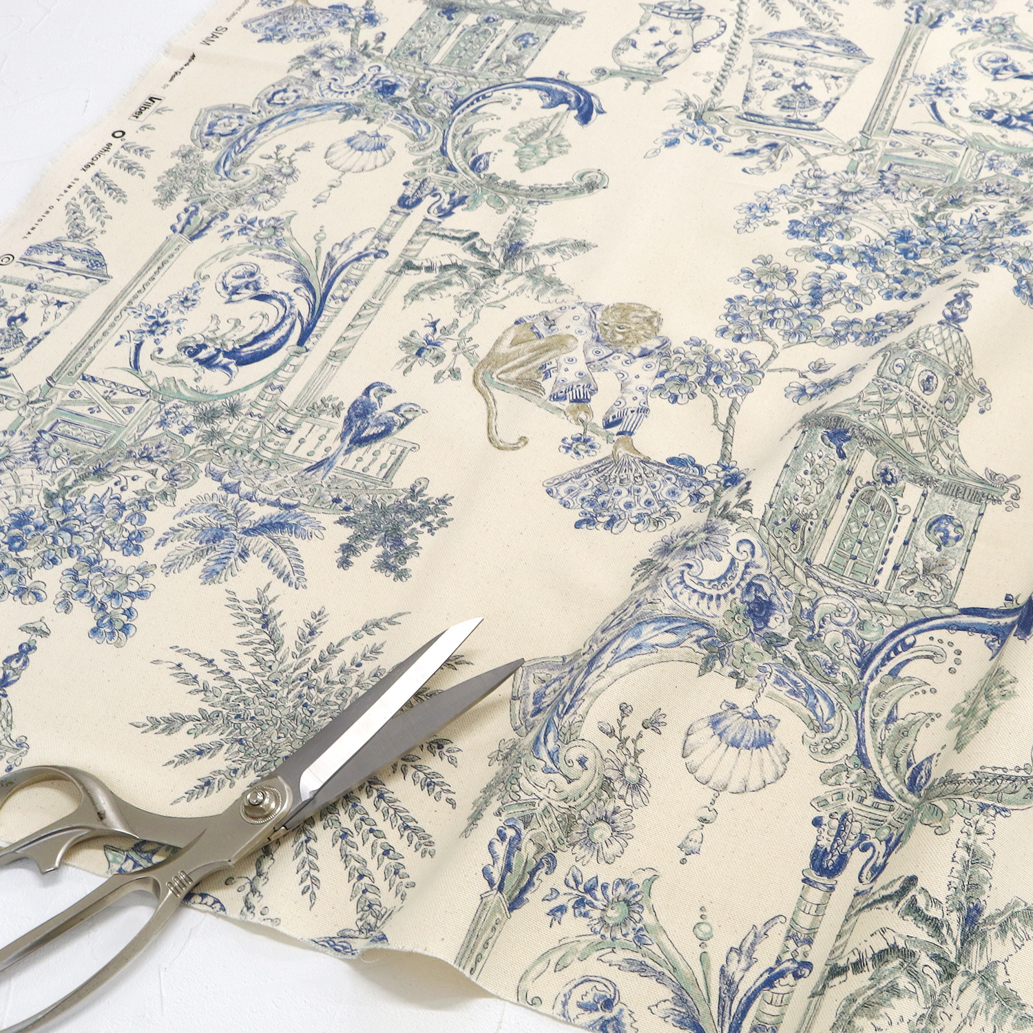 VIL-SIAM-30 Oriental Toile, Monkey and Bird, Imported from Spain, Cotton-linen-like inkjet oxford fabric, Approx. 140cm Wide, 1m/unit (m)
