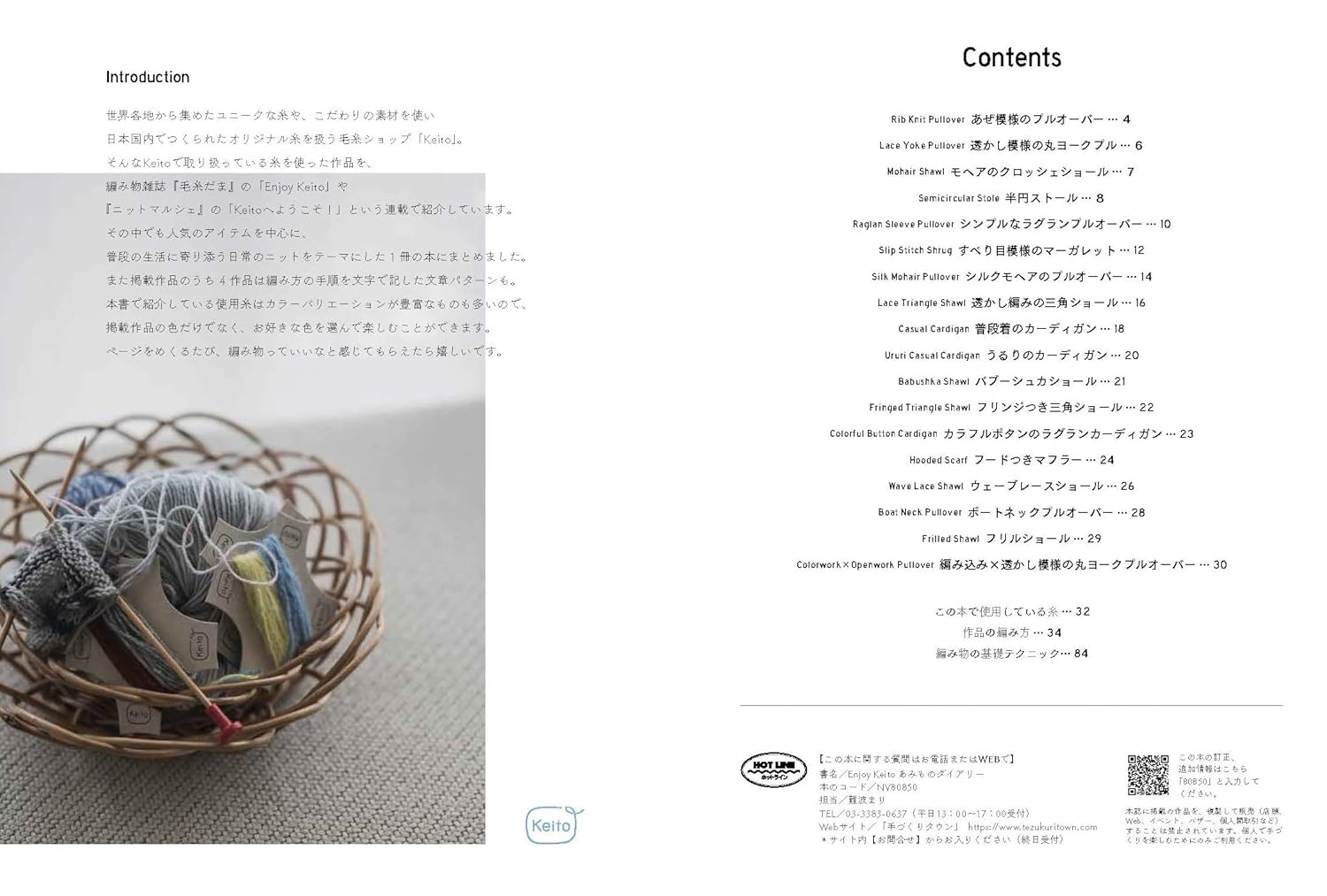 This book brings together popular knit items featured in the “Enjoy Keito” series from Keitodama magazine and the “Welcome to Keito” section from Knit Marche.