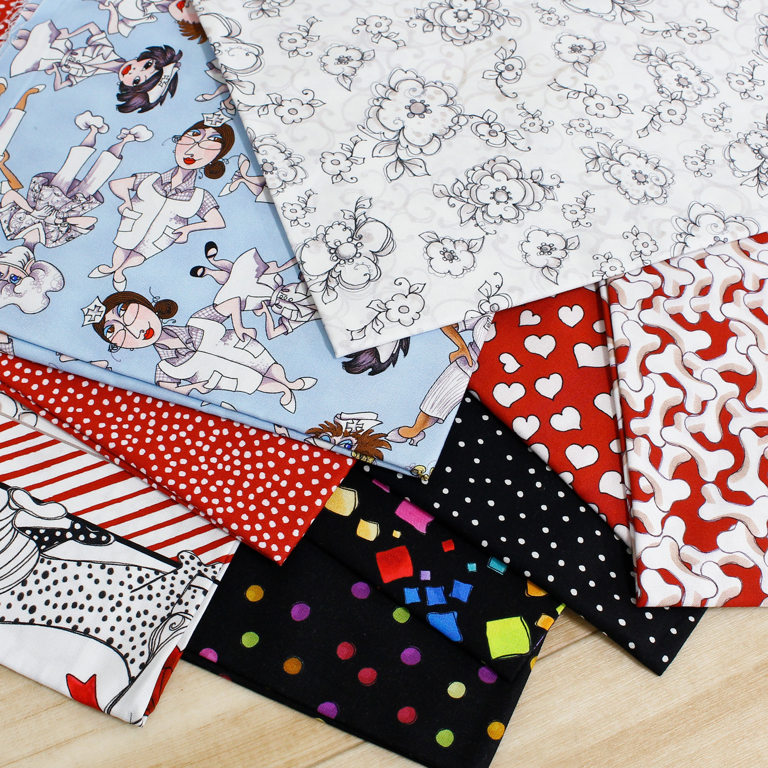 The lineup includes fabrics from various USA fabric manufacturers, including Alexander Henry, FreeSpirit, Robertkaufman, Michael Miller, Timeless Treauser, STELA, and BENATEX. ♪