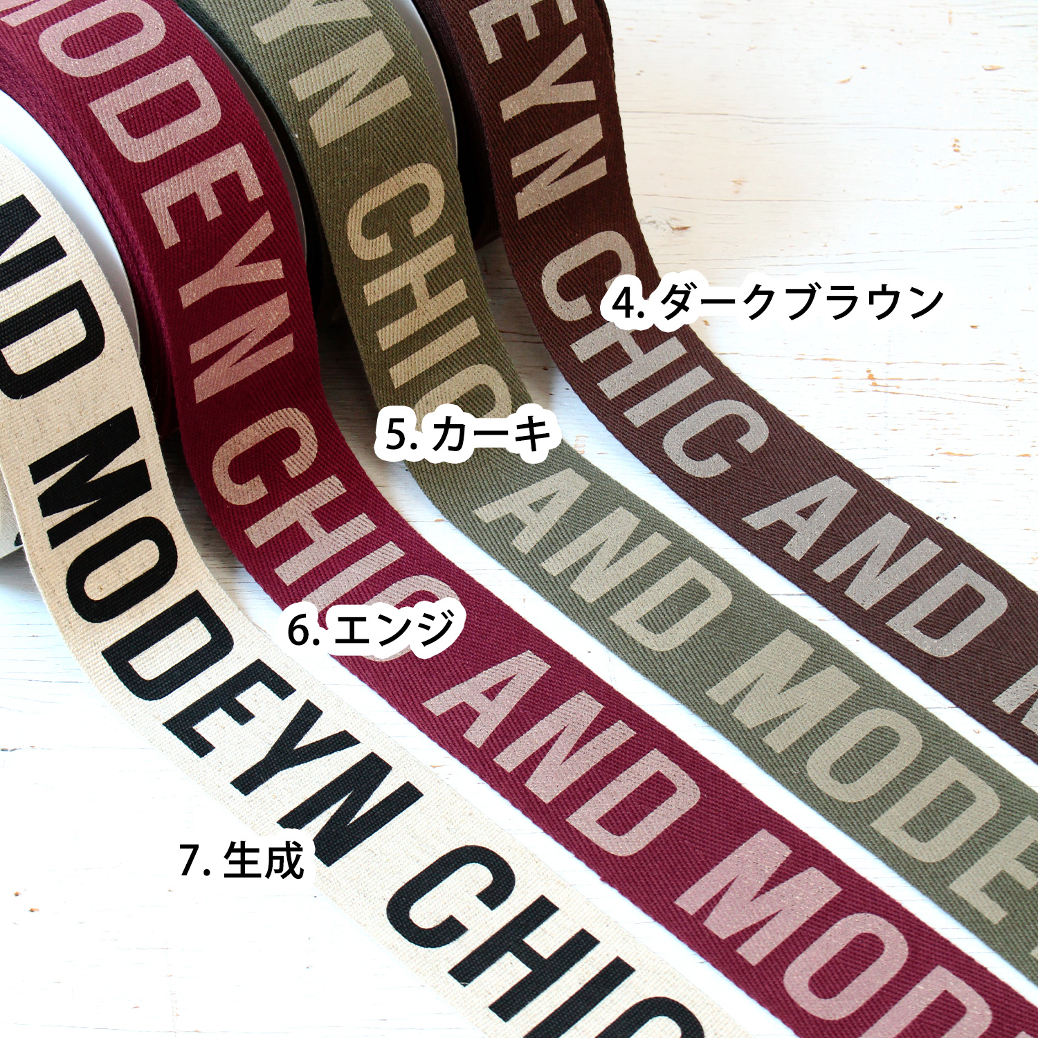 Introducing a wide logo tape printed with stylish English letters.