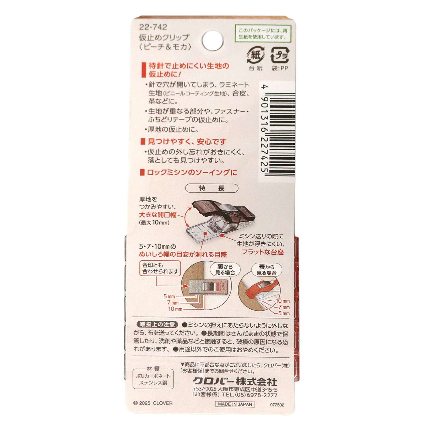 CL22-742 Clover Basting Clips<Peach&mocha> 10 pcs set (袋)
