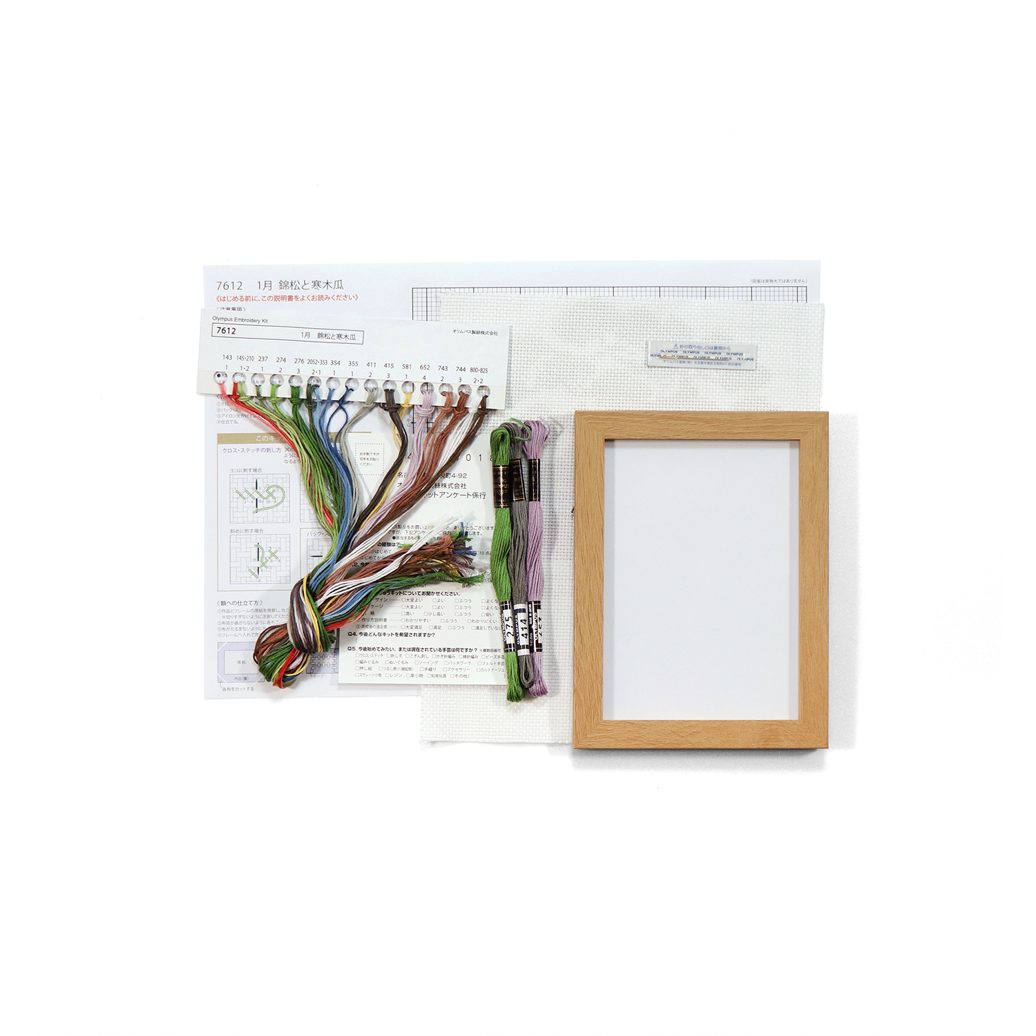 ■Materials: No. 25 embroidery thread, No. 8300 (Indian Cross) <32> off-white (100% cotton), cross stitch needle (steel), instruction manual with colored pattern (paper), frame (MDF)
