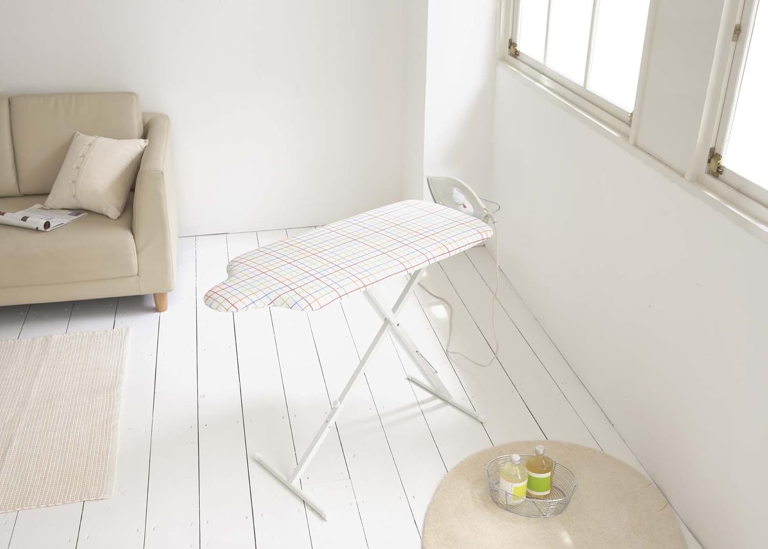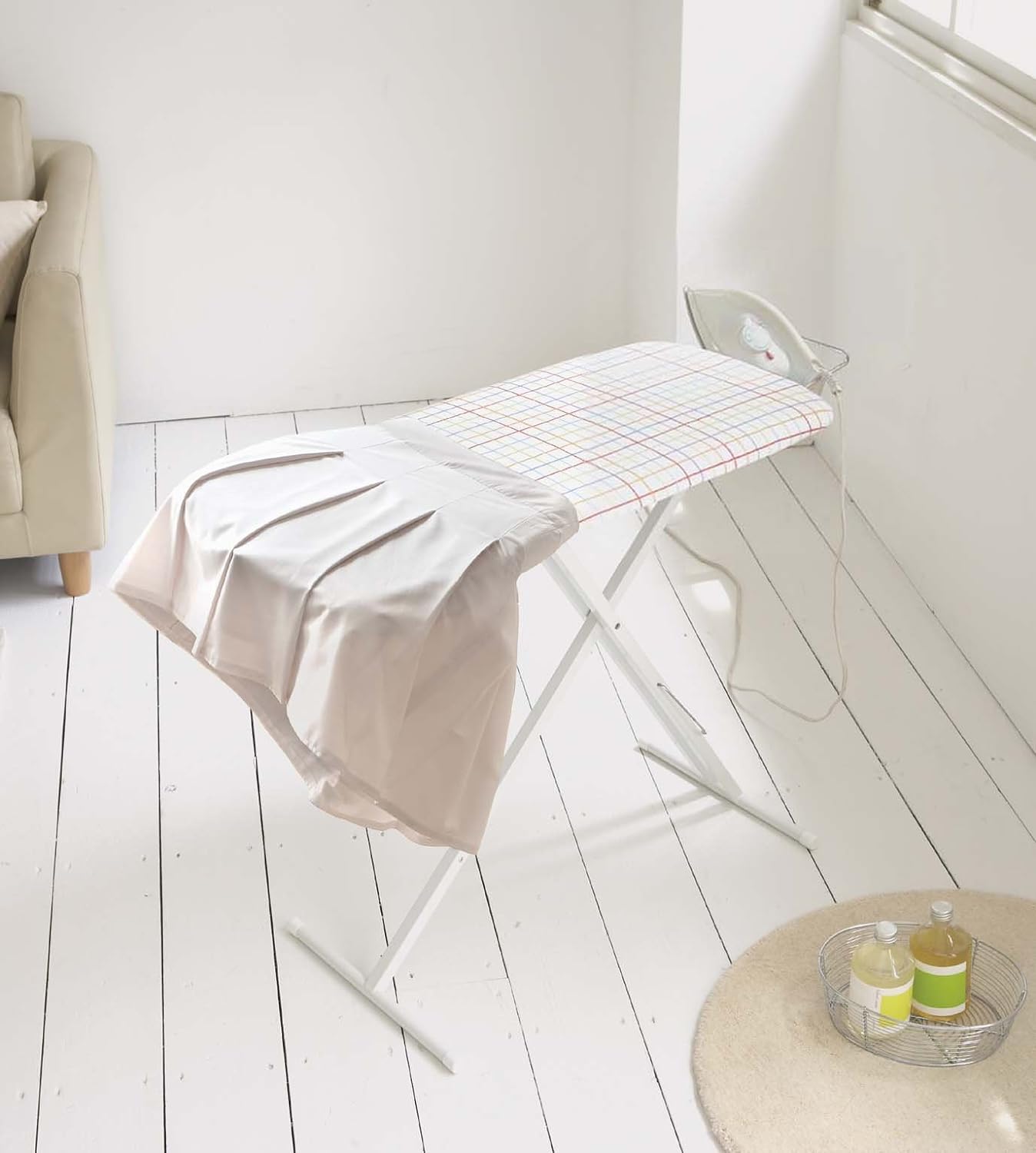 ■Materials Surface cloth: 35% cotton, 65% polyester Top plate/legs: Steel (powder coating) Cushion material: Polyester Button press zone: Polyurethane foam Iron stand: Steel (chrome plated) Cap: Polyethylene