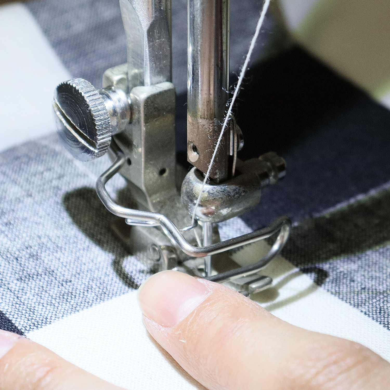 押さえの上部に取り付けて、ゆびが巻き込まれないようにガードする。