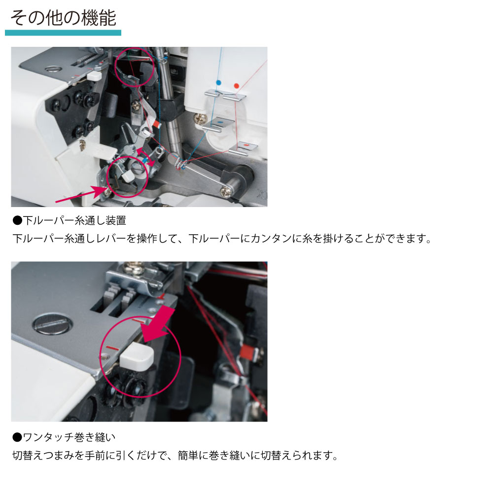 下ルーパー糸通しレバーを操作して、下ルーパーにカンタンに糸を掛けることができます。