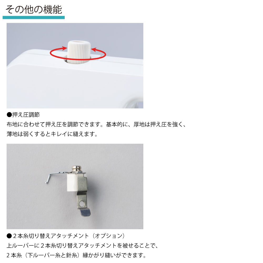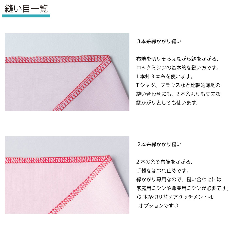 上ルーパーに2本糸切り替えアタッチメントを被せることで、2本糸(下ルーパー糸と針糸)縁かがり縫いができます。