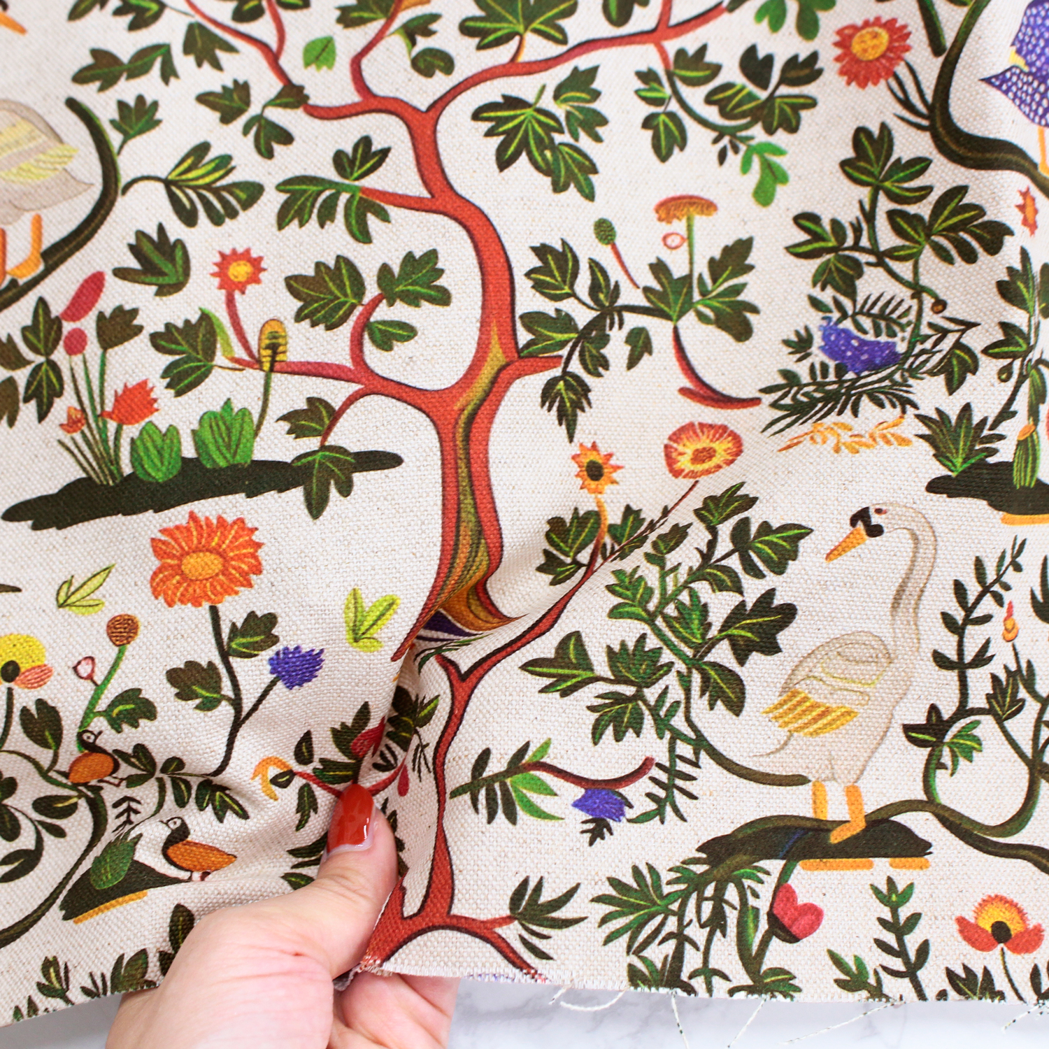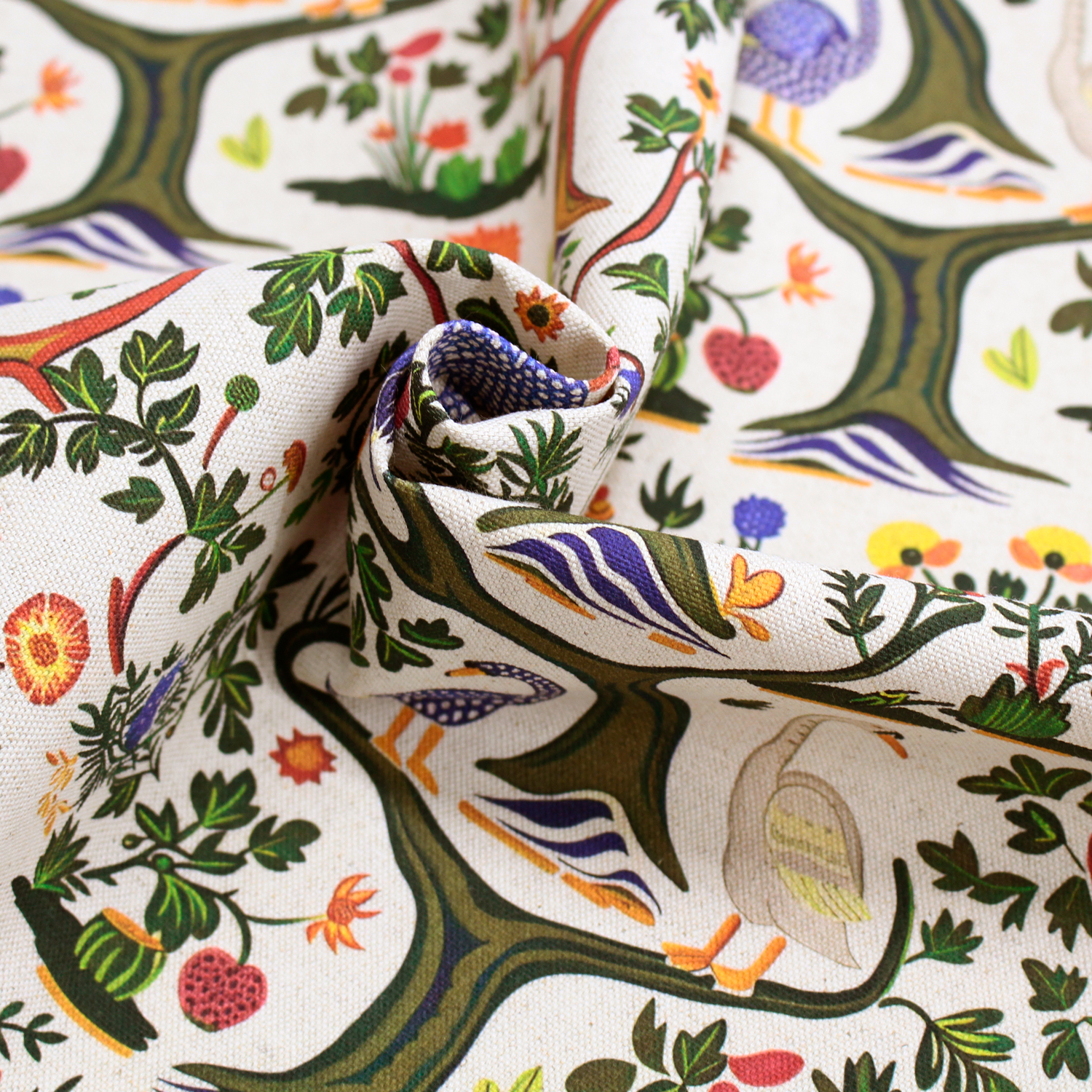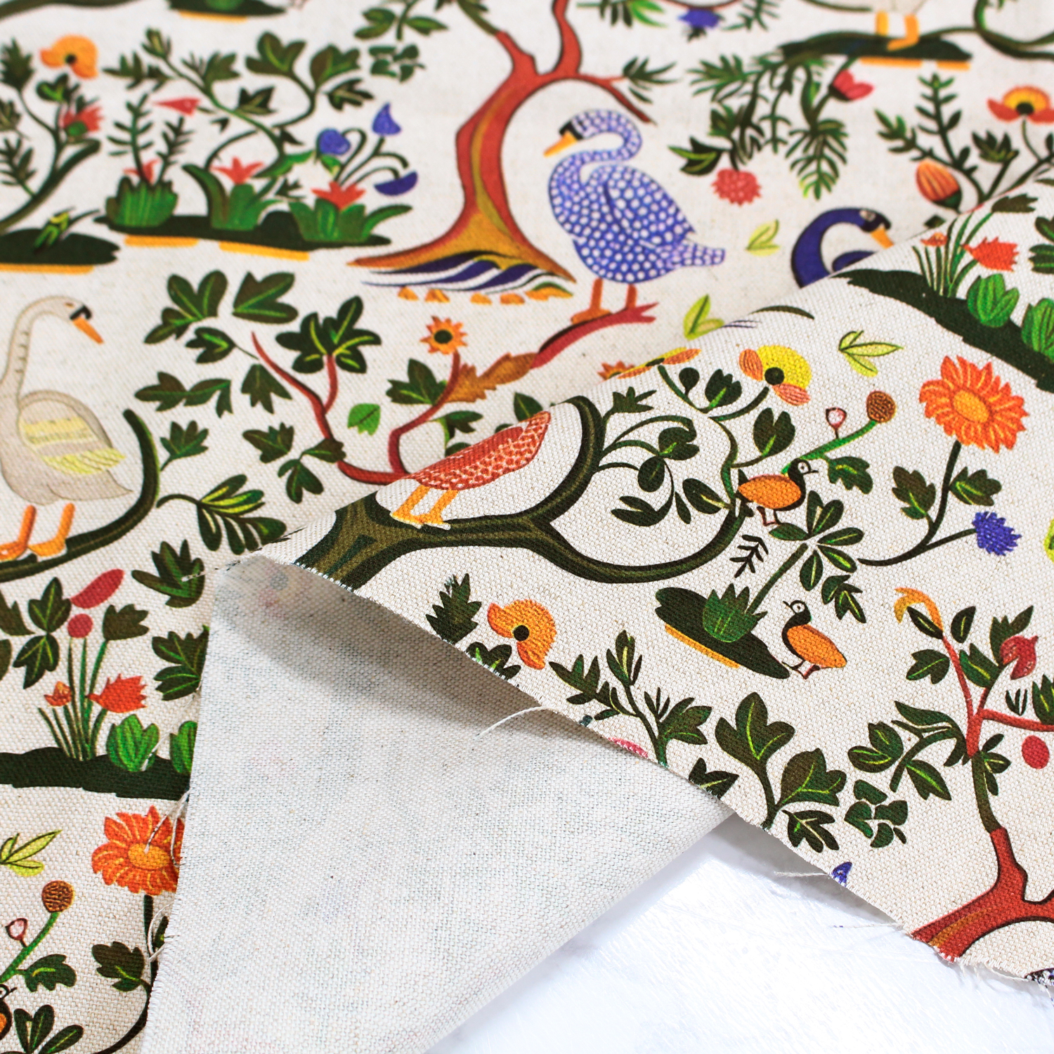 AS-TAMPERE-02 From Spain 北欧風オックス 花と鳥プリント 巾約140cm 1m単位 (m)