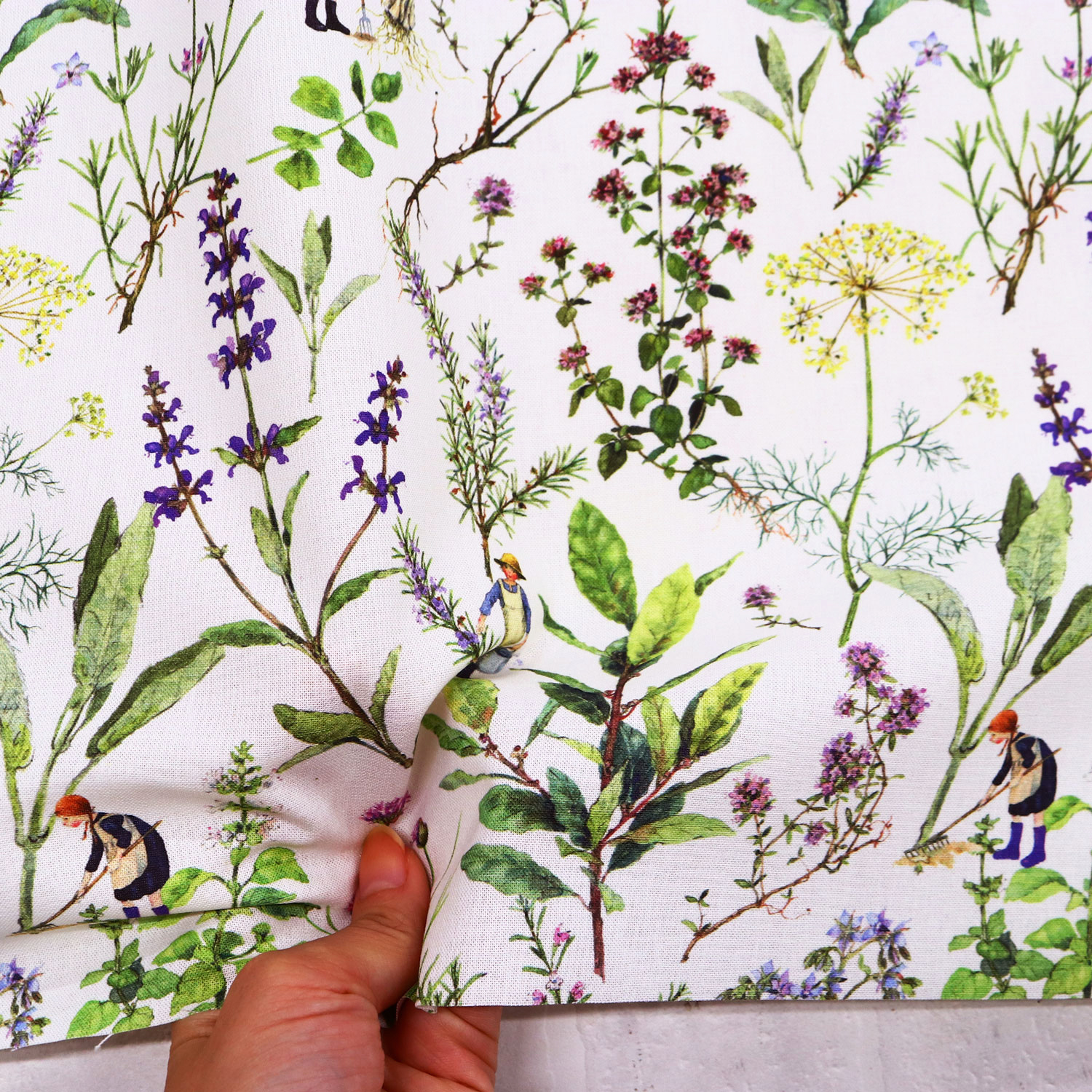 ACU3523-816-50CM 植物と小人 acufactum プリント生地 約150cm幅 50cm単位 (枚)