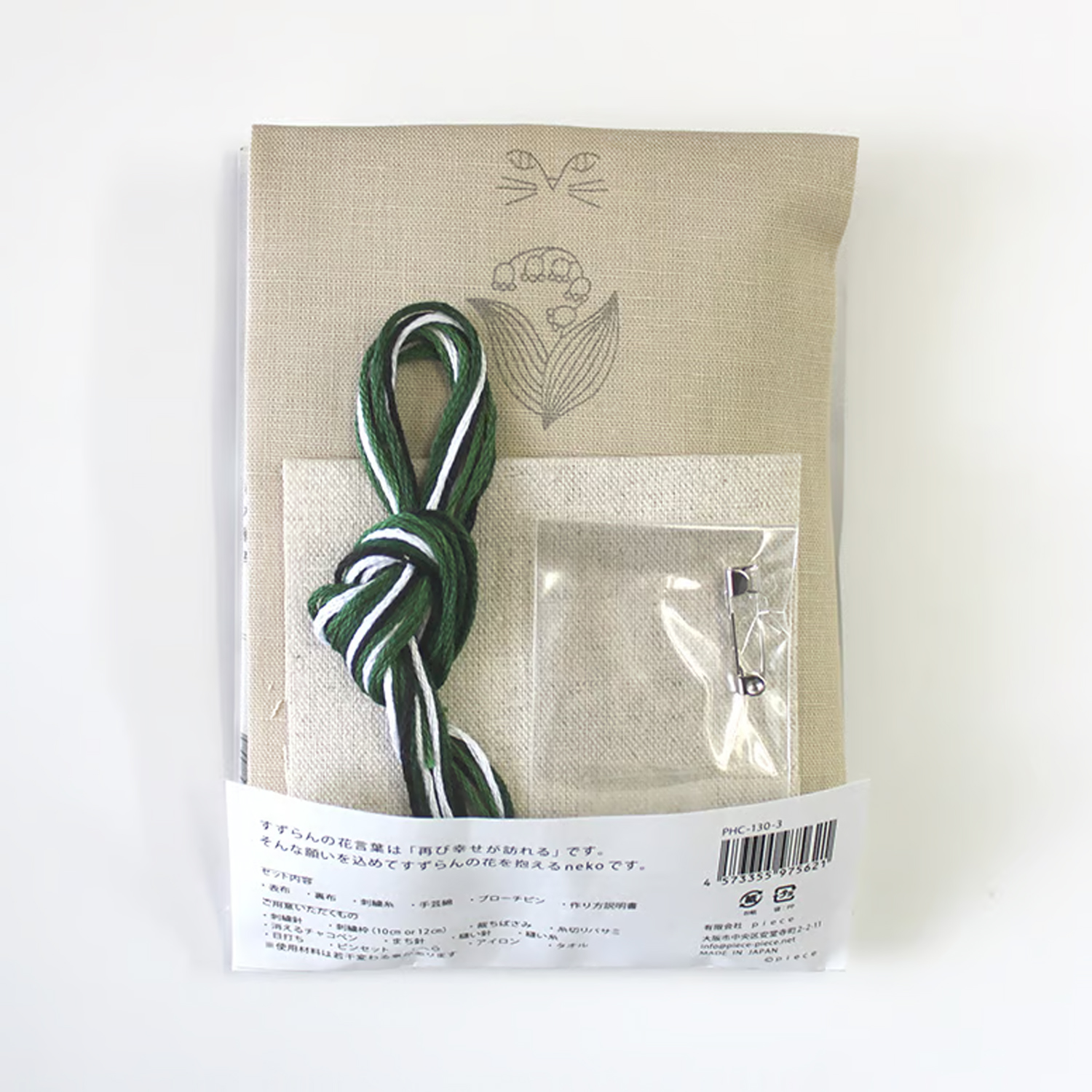 PHC-130-3 刺しゅうキット nekogao 刺繍ブローチ -すずらん- (袋)
