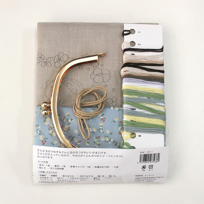 ・刺繍糸計10色 ・口金 ・紙ヒモ ・作り方説明書