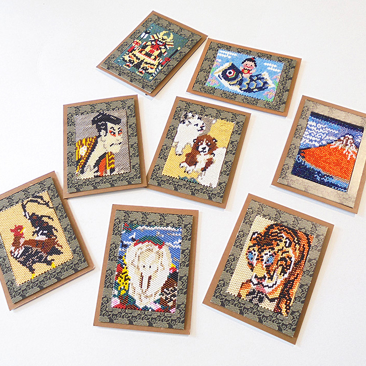 日本画や節句モチーフを1000粒以上のビーズで表現したビーズステッチキット。