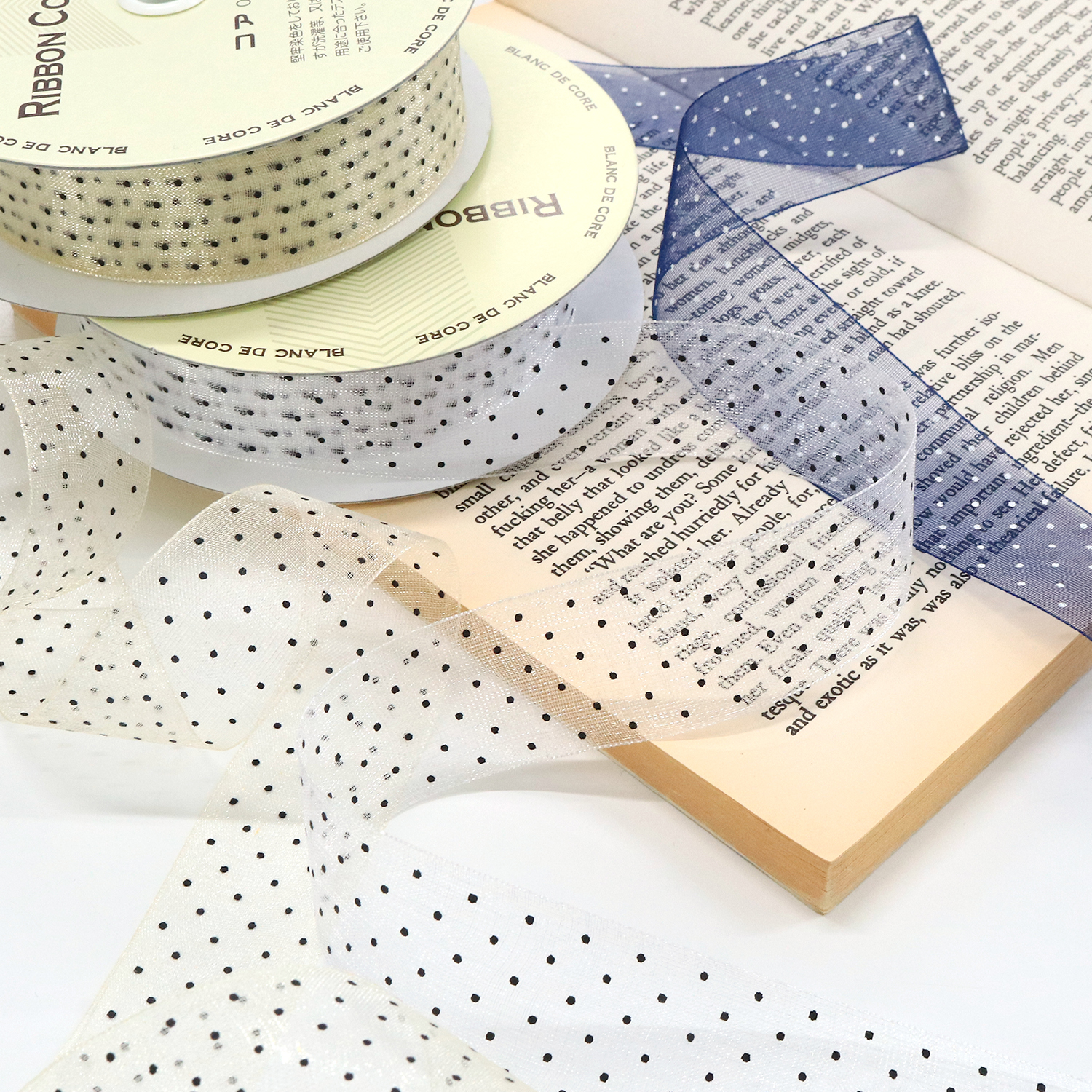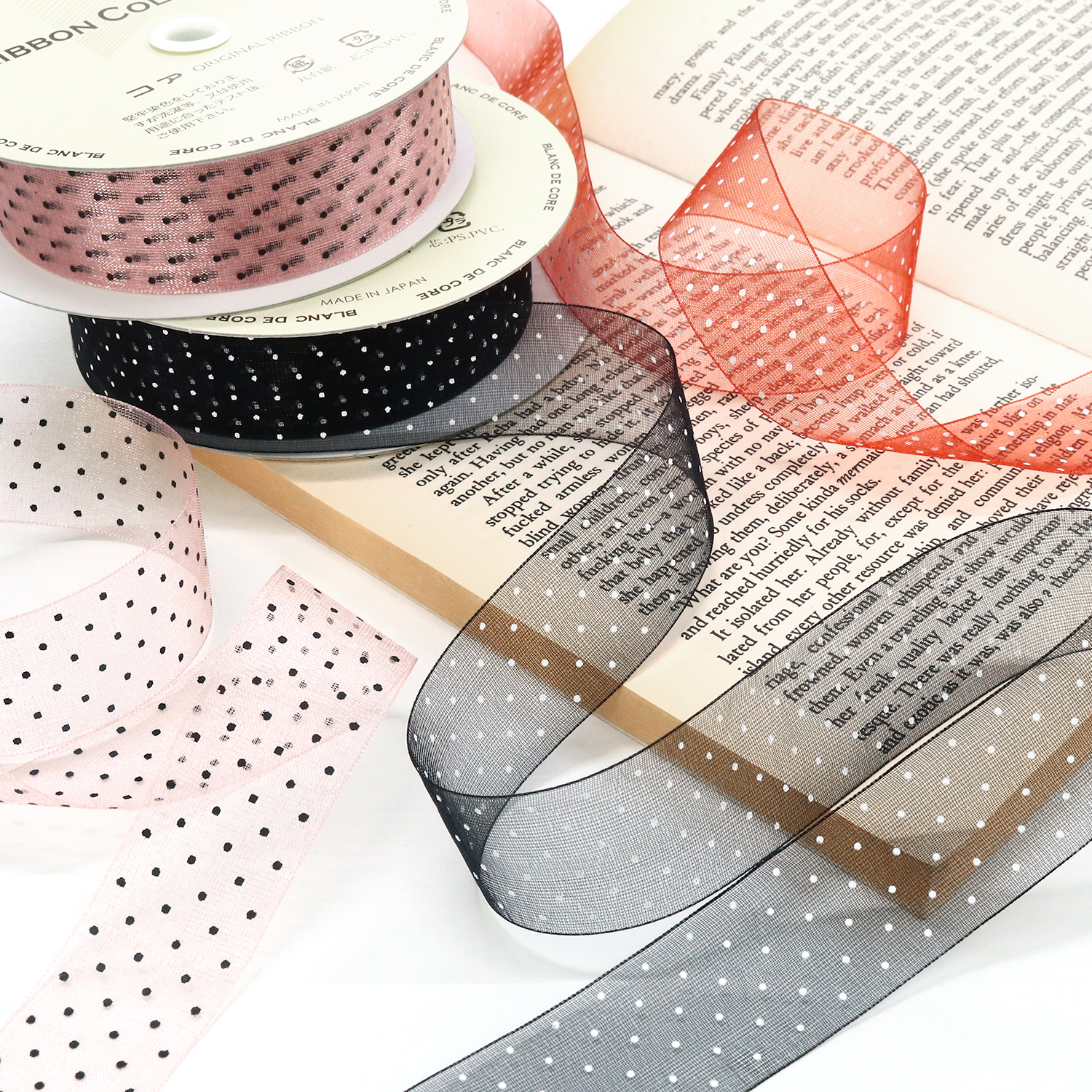 KR1182-25 ドット柄オーガンジーリボン 25mm巾×15m巻 (巻)