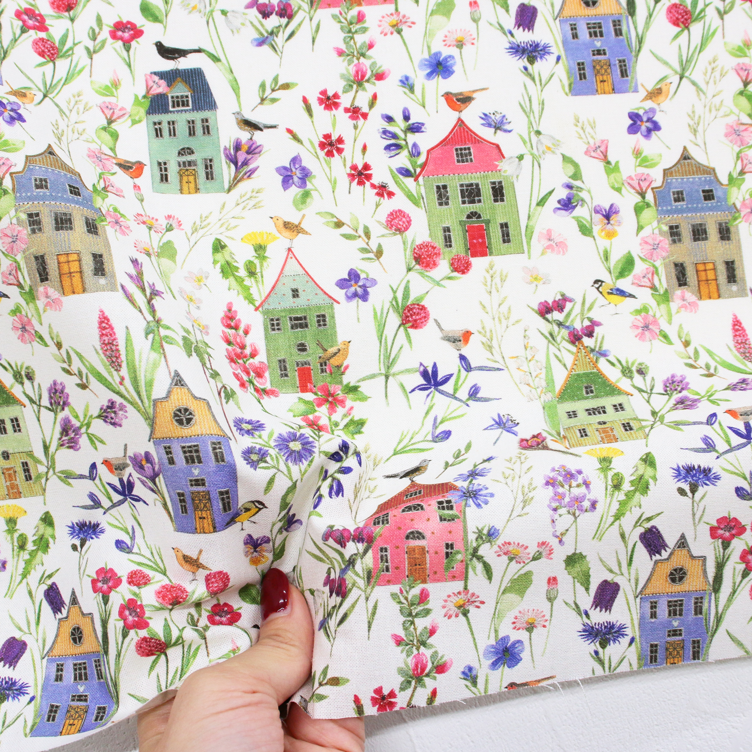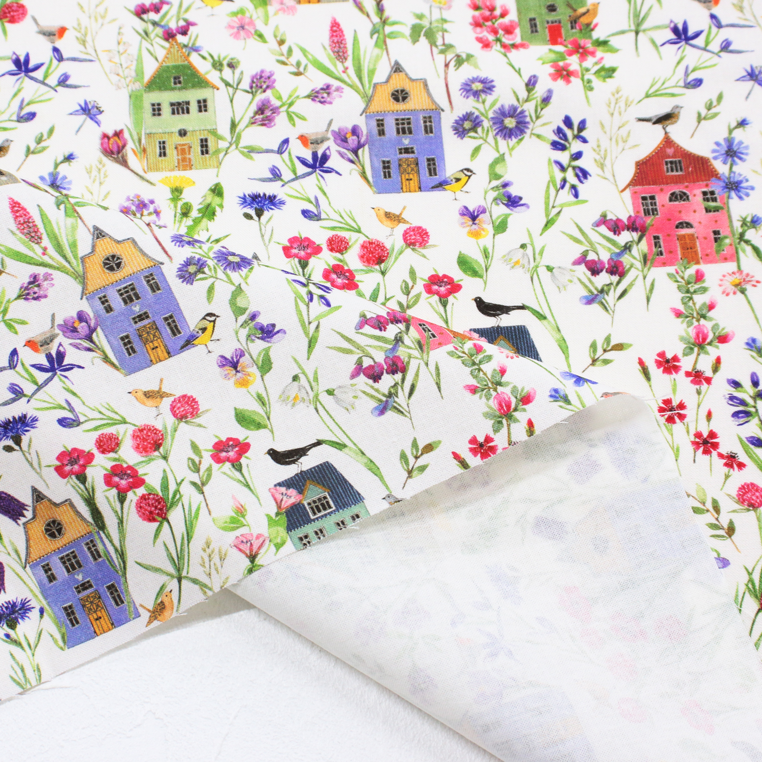 ■ACU3523-933R 家と鳥 acufactum プリント生地 約150cm幅 原反約10m (巻)