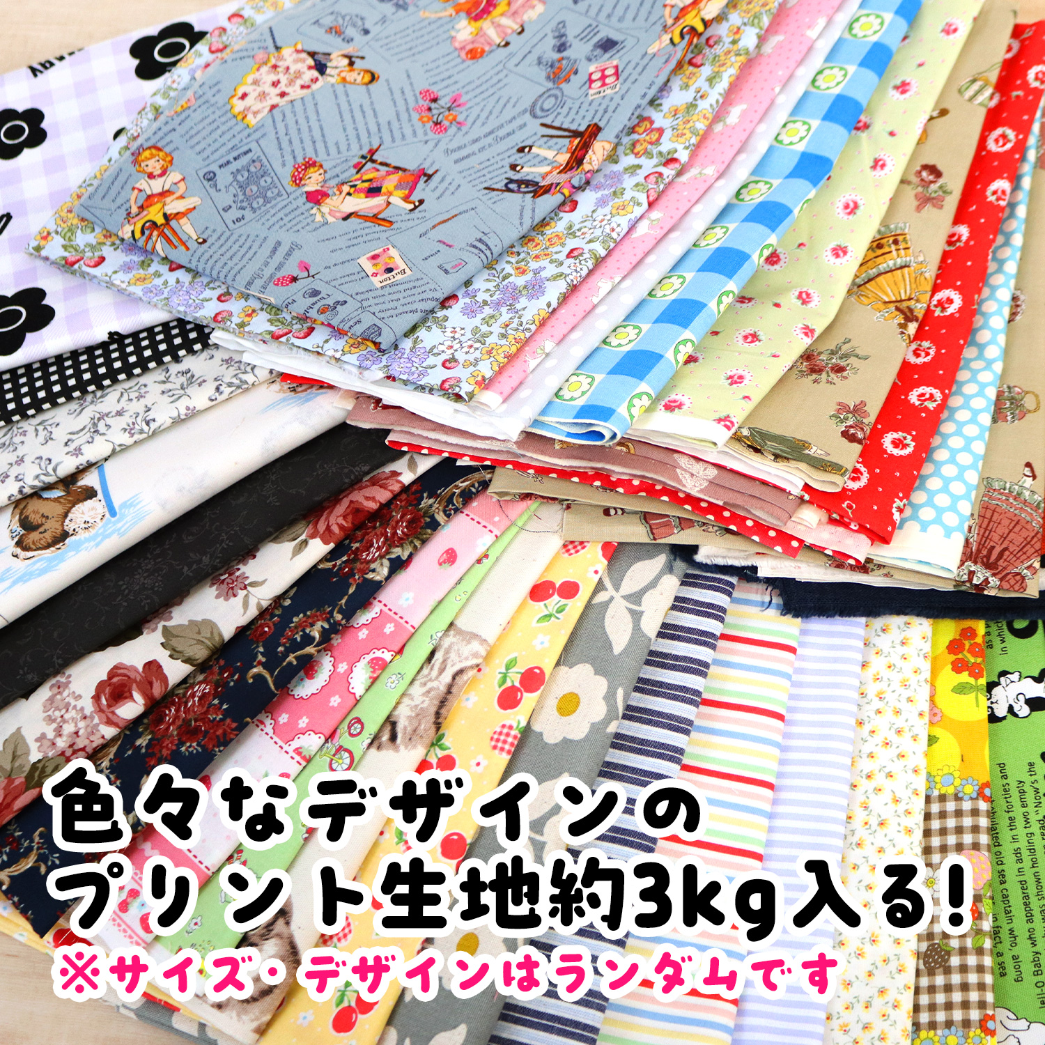 ■サイズ・デザインランダムのプリント生地ハギレが約3kg入ります!