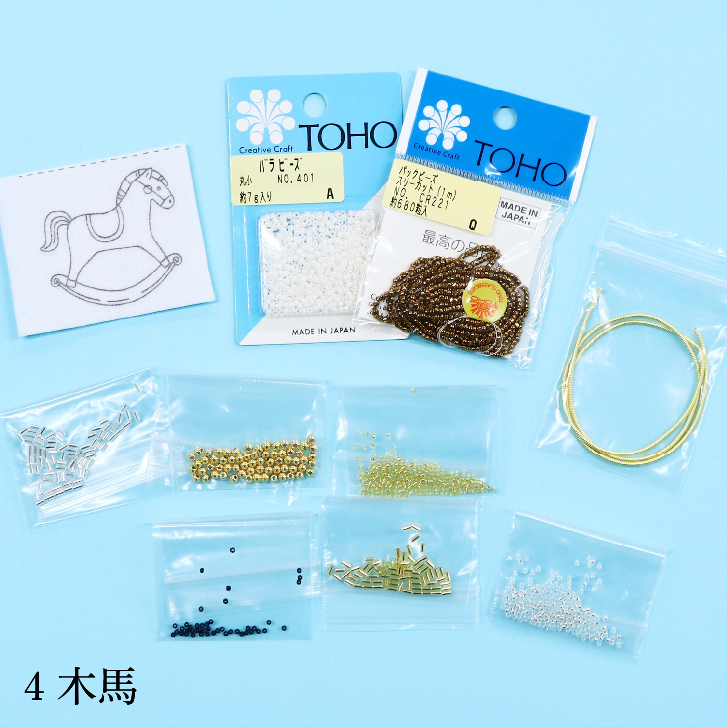 ビーズや刺しゅう用モールも作品に合わせてセットされているため、図案に沿って進めるだけで可愛いモチーフ作りが楽しめます。