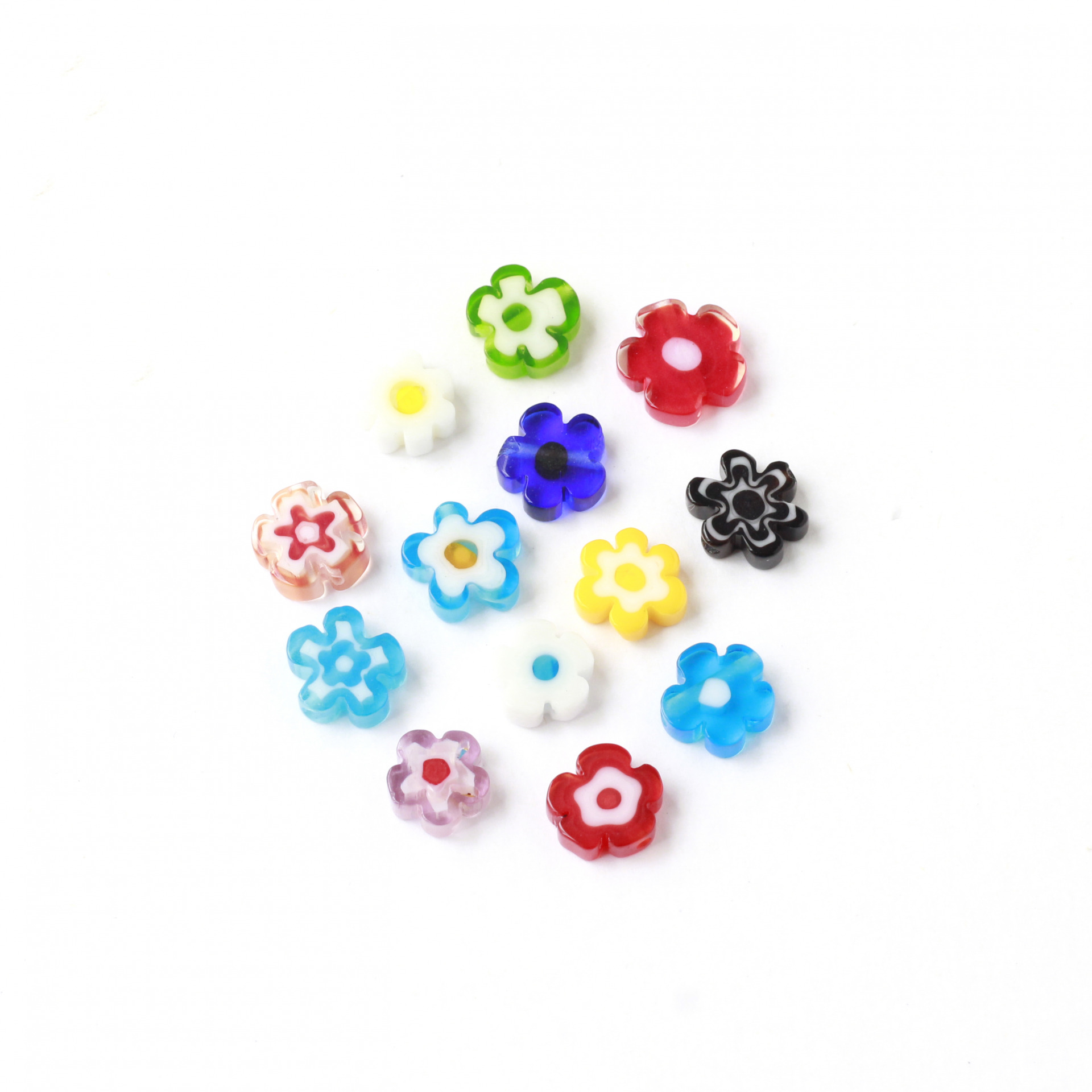 カラフルなお花のモチーフは日本の金太郎飴のようにガラス棒をカットして作られているのでお花の柄は1つ1つ少しずつ 違う表情を見せくれます。 男性KPOPアイドルも普段のコーデに取り入れたことも話題に!ユニセックスに楽しんでいただけます。