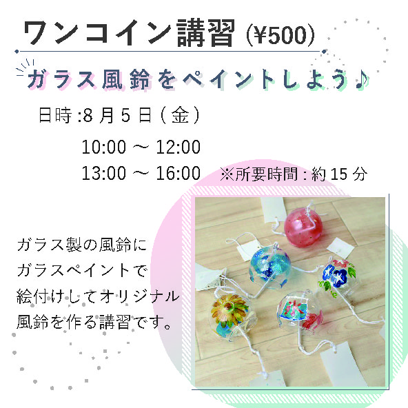 5階売り場イベント ワンコイン講習会『ガラス風鈴をペイントしよう♪』