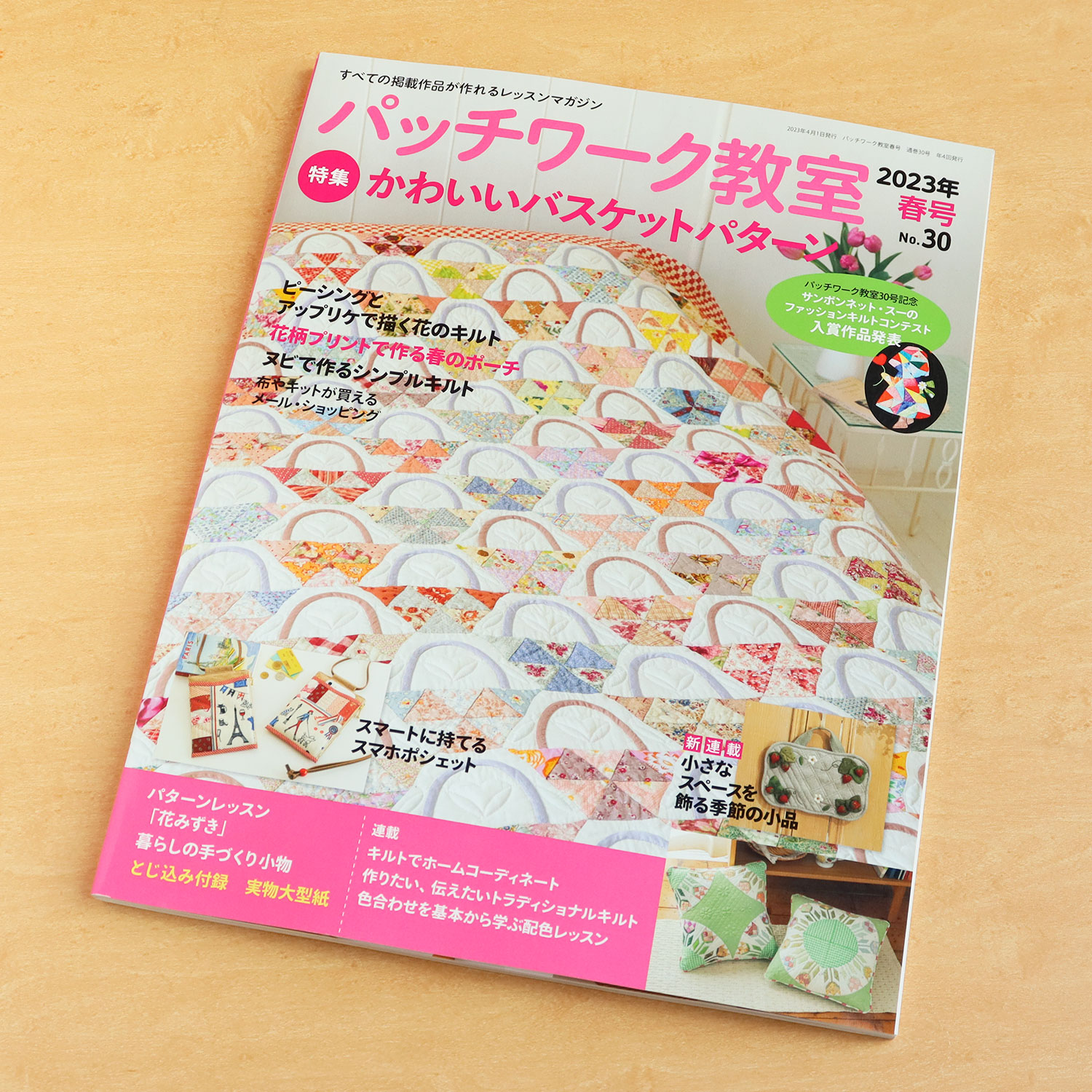 『パッチワーク教室』2023年春号に、弊社日本紐釦貿易のキルティング生地「nubi-ヌビ-」を使用した作品が掲載されました。