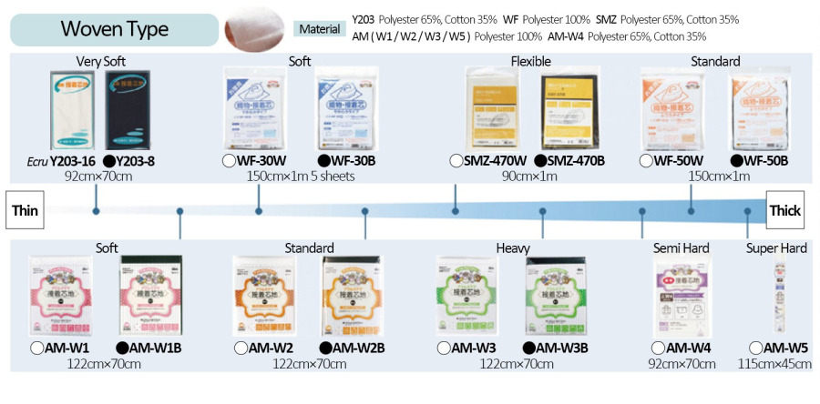 Among these, the fusible interfacings you’ll most often see and use can generally be categorized into Non-woven type and Wovwn types.