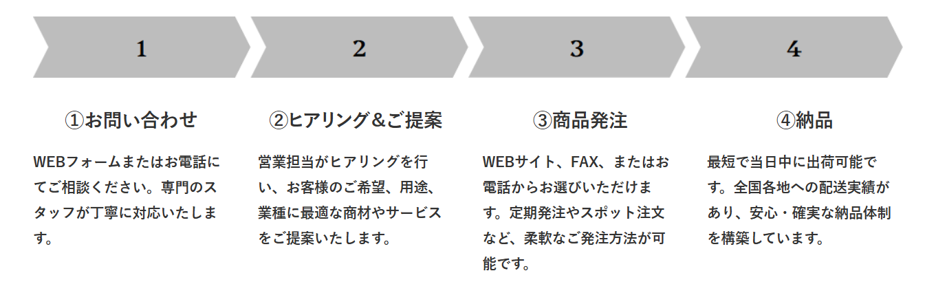 お客様からお問い合わせを頂いてから取引開始や商品納品に至るまで、営業担当者としてどのように動き、どのような工夫をしているのか、その裏側までじっくり掘り下げます。