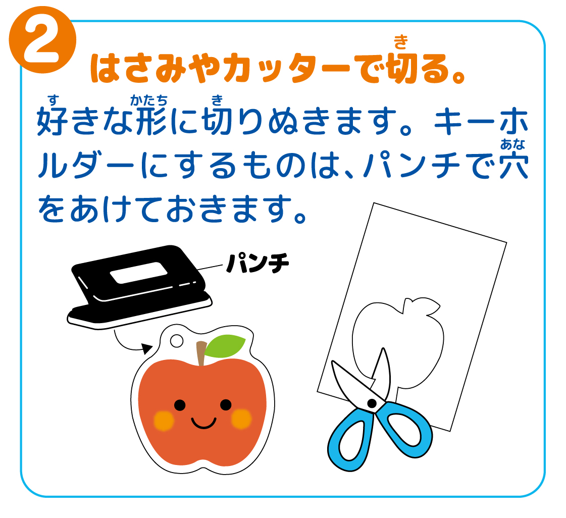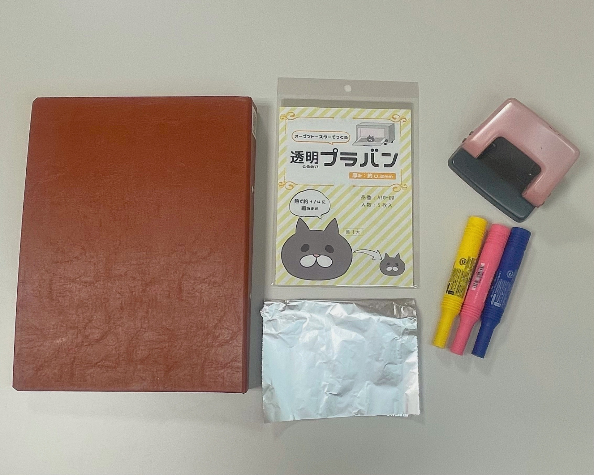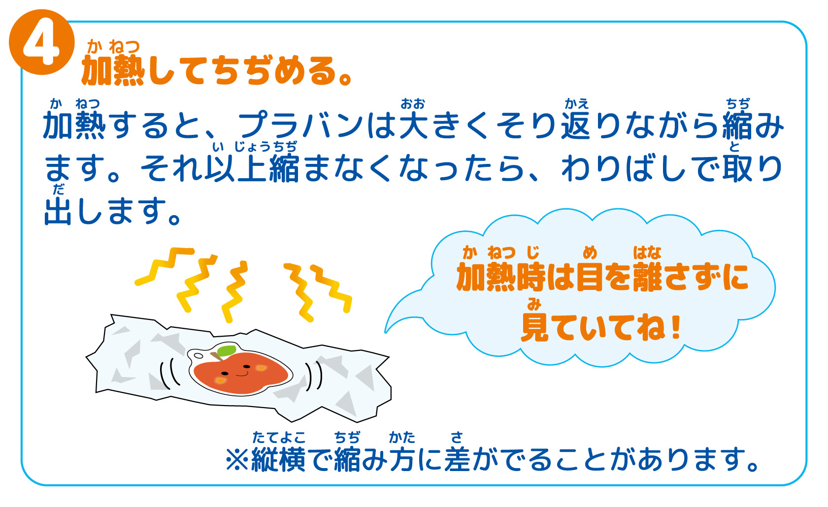 加熱すると縦横で約1/3〜1/2にギュッと縮んで厚みが増すプラスチック工作素材です。比較的簡単な工程のため、子どもから大人まで楽しめるお手軽手芸です。