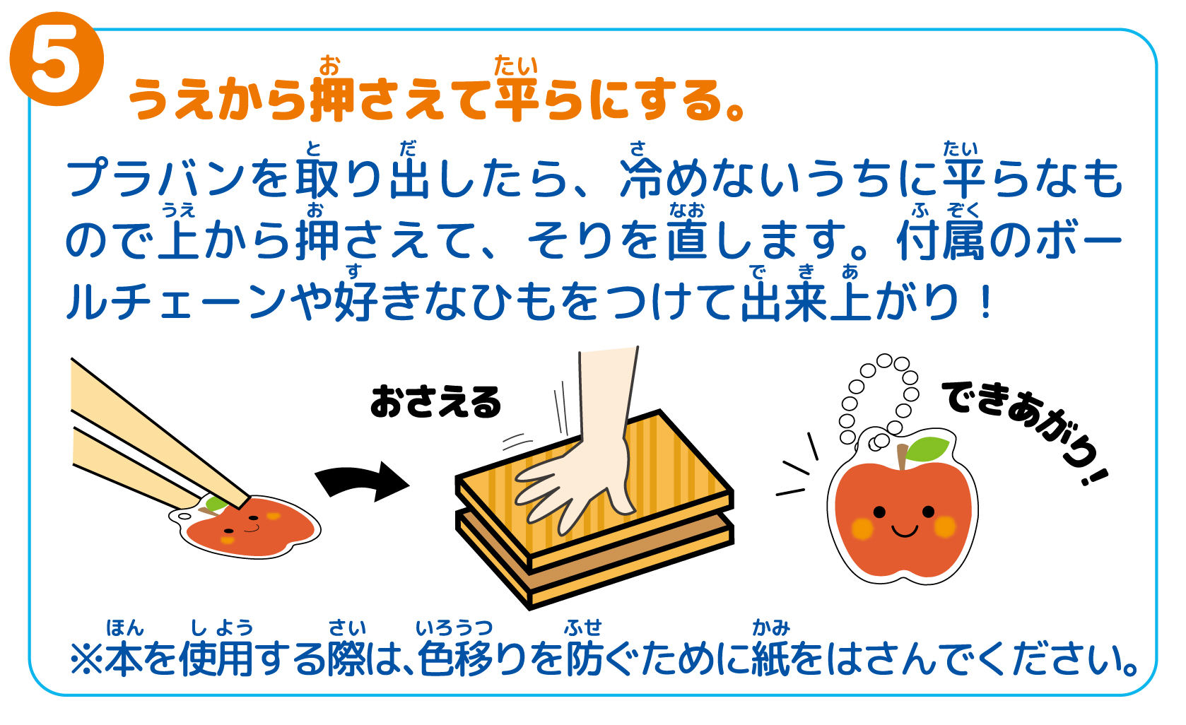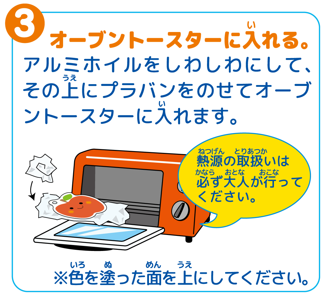 ・プラバンは縮みます。縮んだ後色味が濃く出るので絵を描くときは気持ち薄目に色づけるのがポイントです!