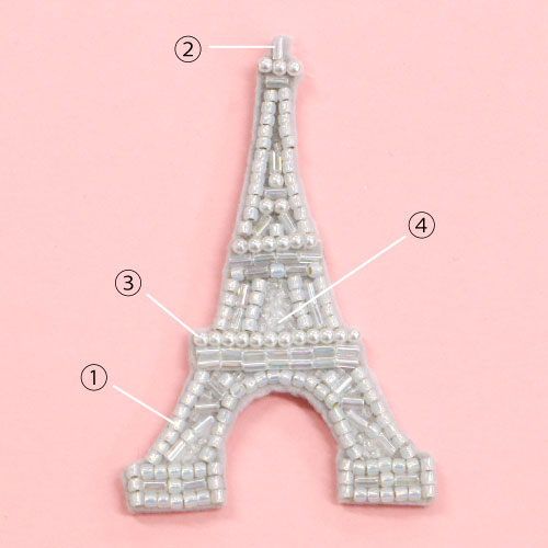 ビーズ刺繍や、刺繍に使える、図案が印刷済のフェルト「らくちくフェルト」!今回はParisに使用しているそれぞれの材料を簡単にご紹介していきます!
