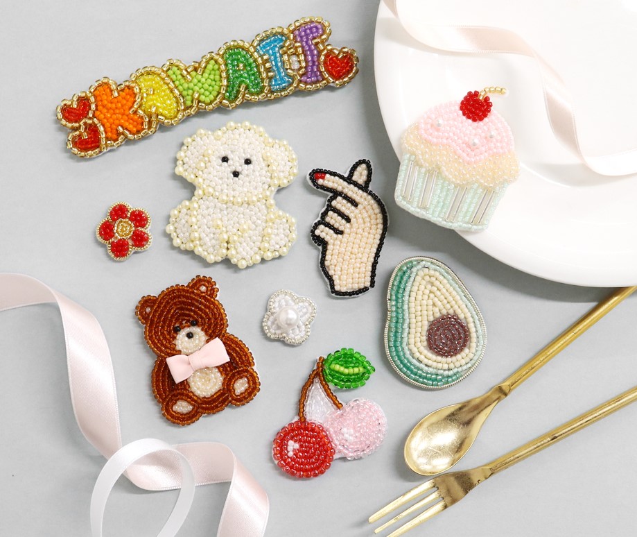 ビーズ刺繍や、刺繍に使える、図案が印刷済のフェルト「らくちくフェルト」!今回はKAWAIIに使用しているそれぞれの材料を簡単にご紹介していきます!