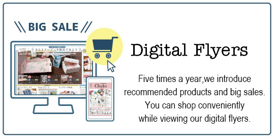 We use digital flyers during our big sales held five times a year. You can browse the flyer on your screen and simply click any item you like to jump straight to its product page—making your shopping even smoother!