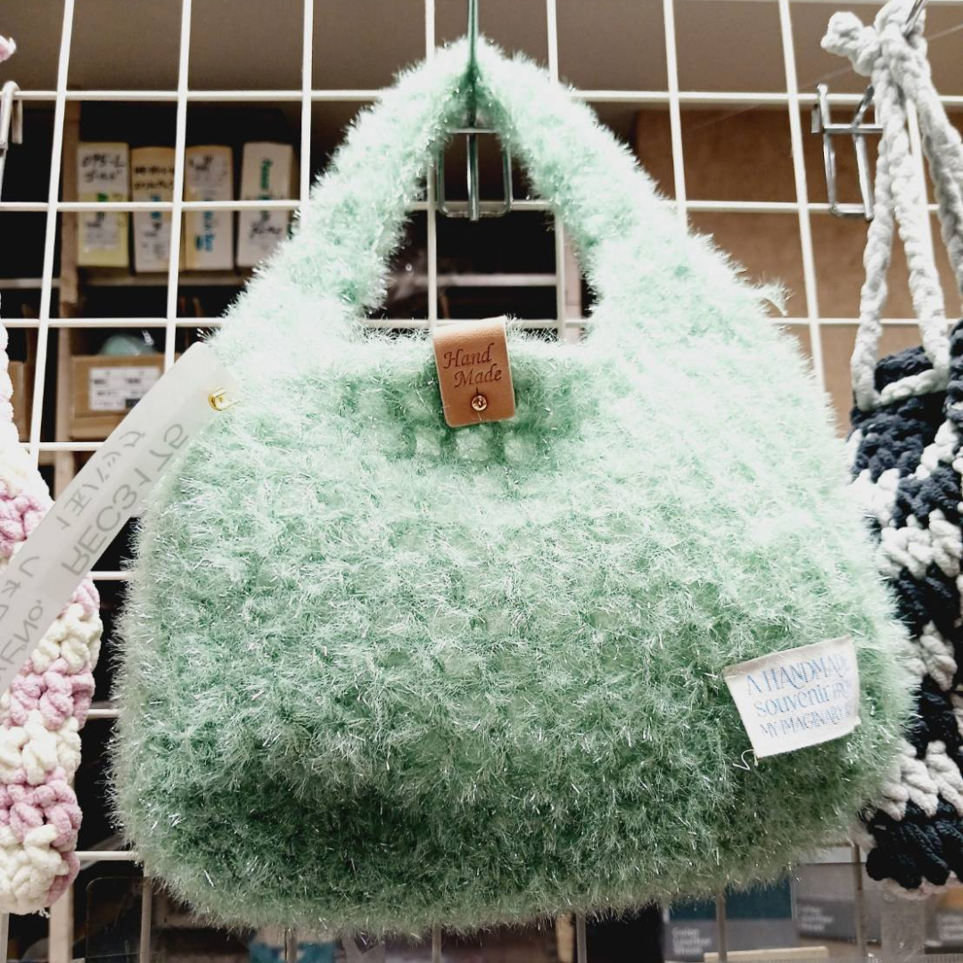 在庫糸や余り糸を組み合わせて、 アームホルダー、バッグ、巾着などの小物を次々と制作。 色合わせや素材の違いを楽しみながら、まさに“自由な発想”で生まれたシリーズです。