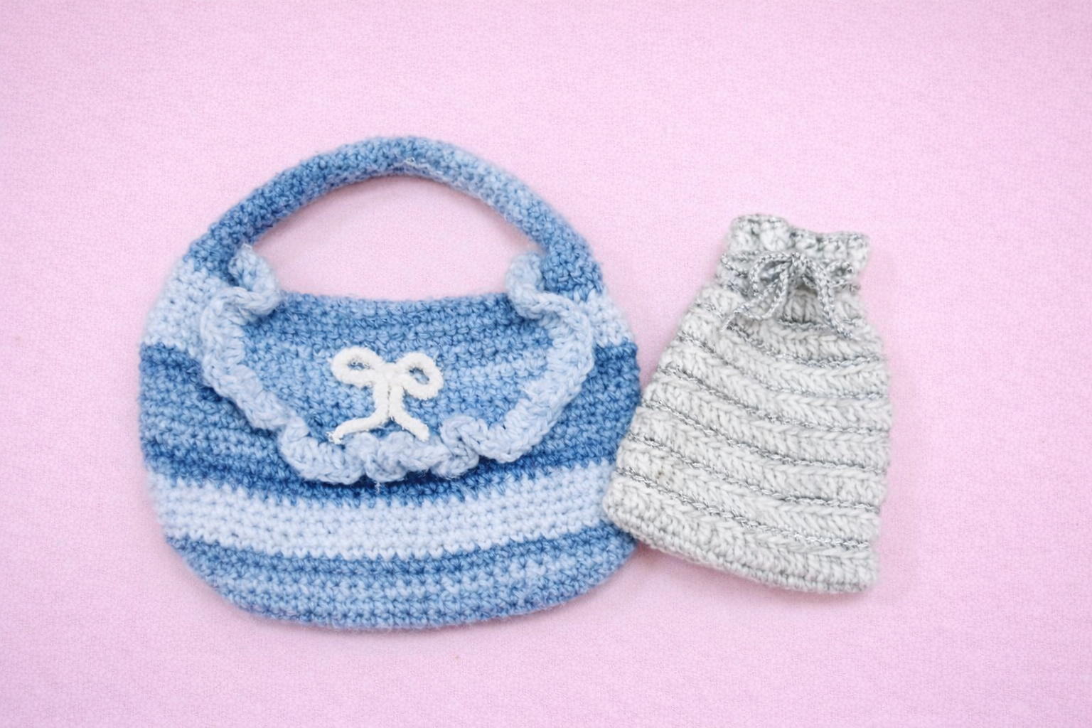 巾着バッグはお家にあった糸で製作!ループのフリルがとってもかわいい作品です♪