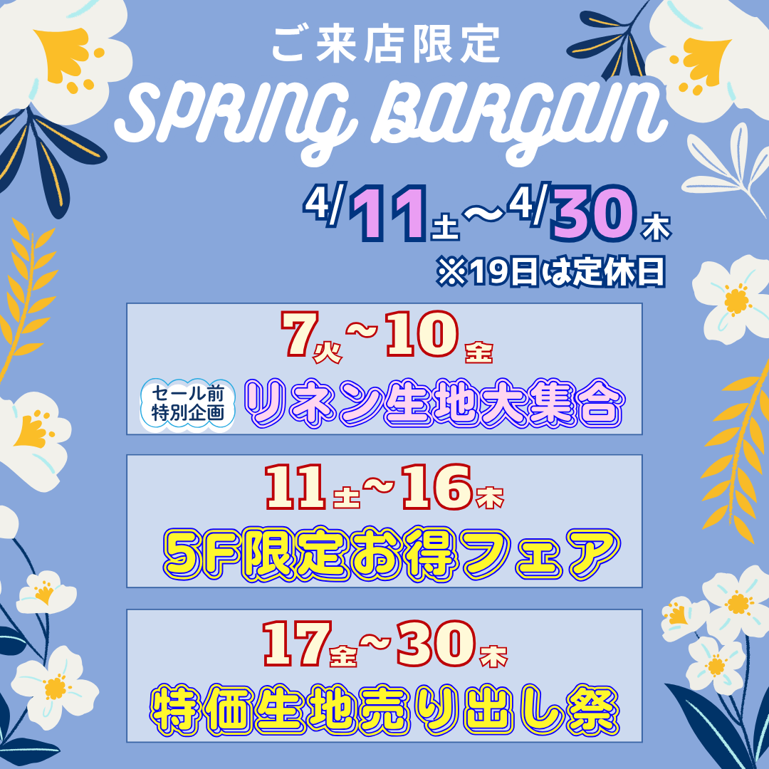 《SPRING BARGAIN》 4/11(土)~4/30(木) 開催