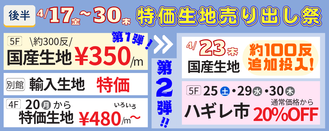 【後半】4/17~30 特価生地売り出し祭