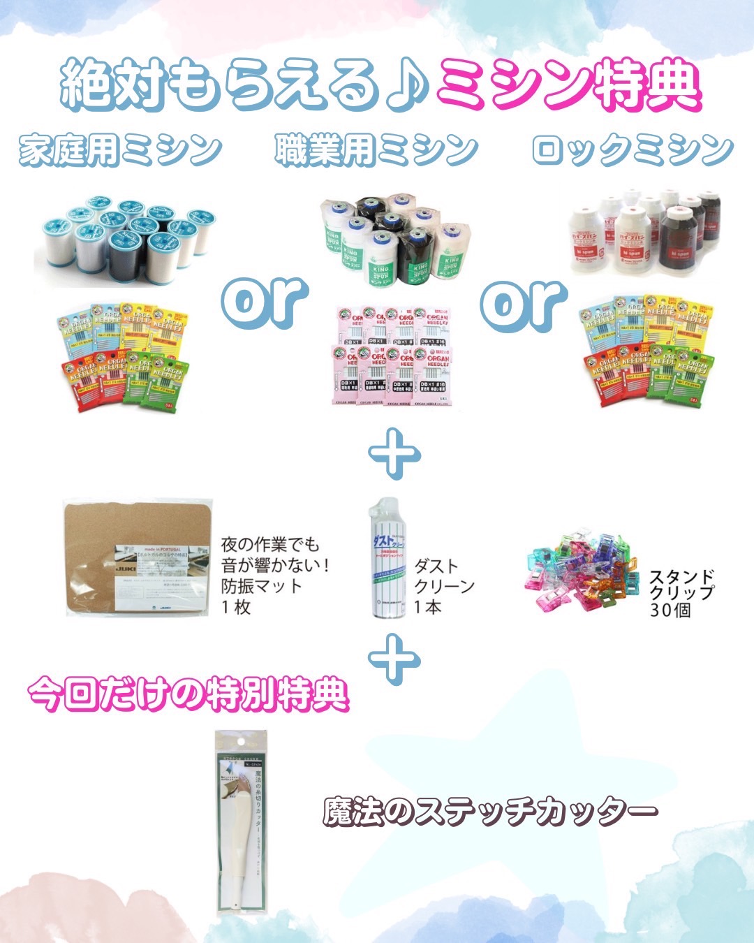 ミシンをご購入いただいた方全員に…