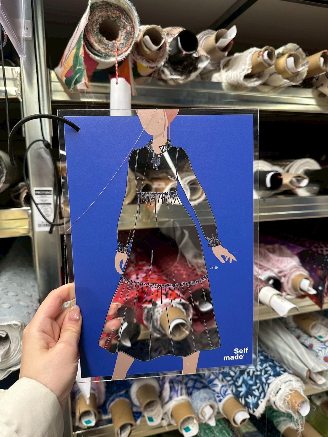 それを気になる生地の前に当てると、「あ、この布でワンピース作ったらこんな感じになるんだ」ってイメージがぱっとわかる。
