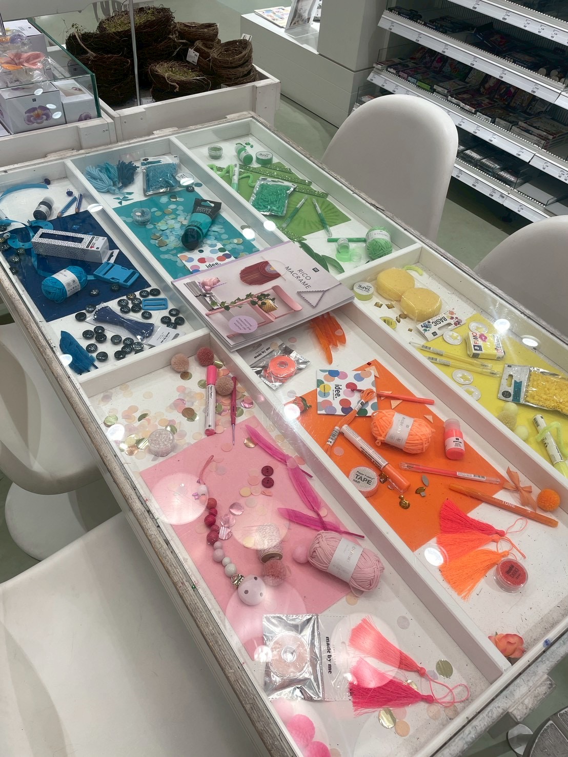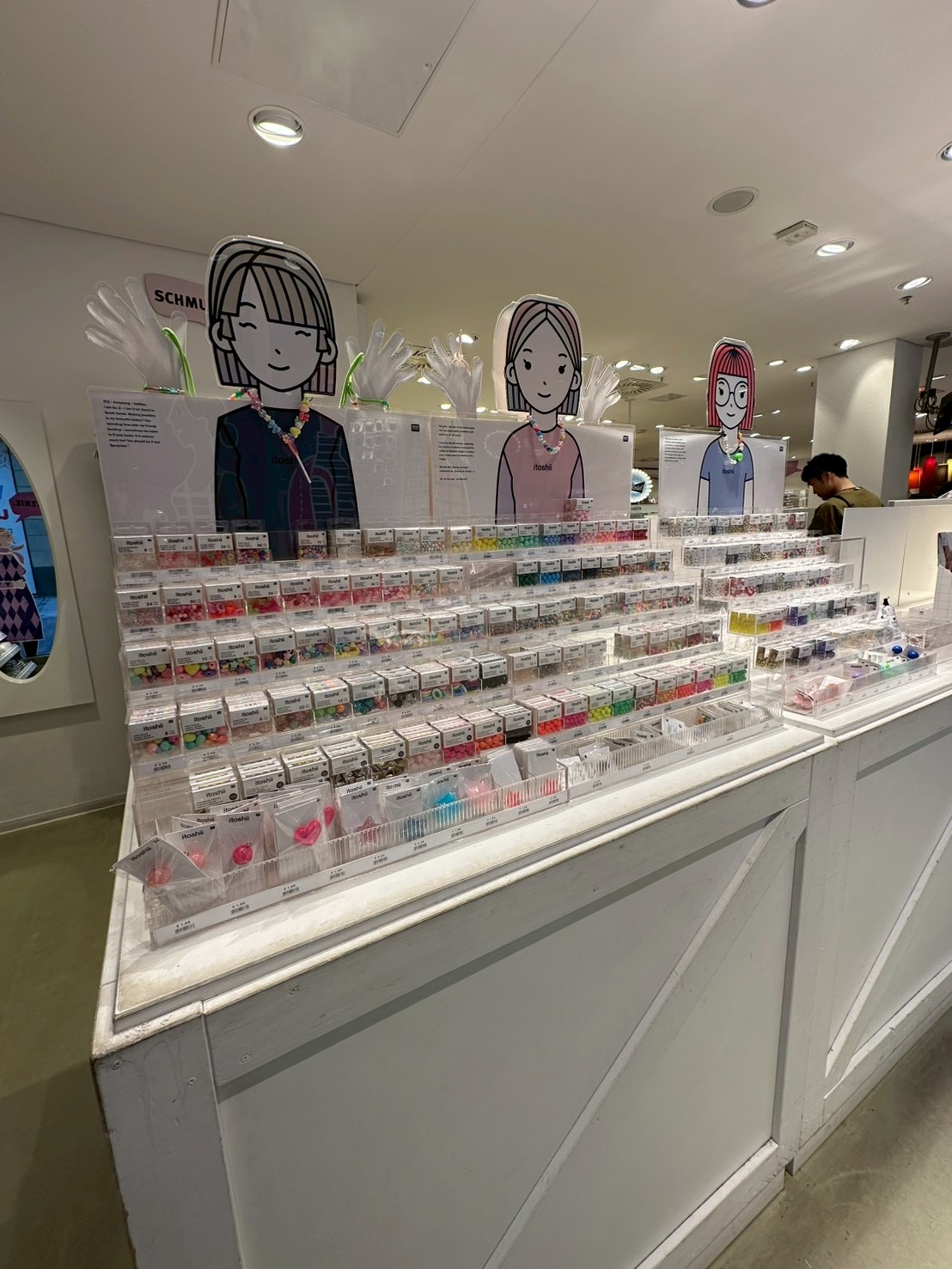 ビーズ、アクセサリーパーツ、文房具、毛糸、ソーイング用品、ボタン、ウェディング用品、画材……なんでもあるカラフルなクラフト店です。