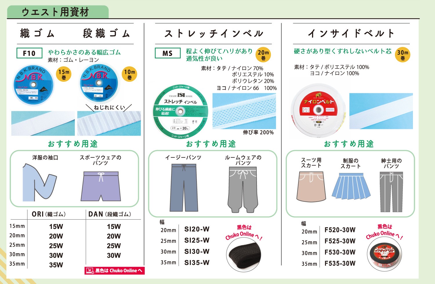 織ゴムの他にウエストに使用するものにインサイドベルトがございます!