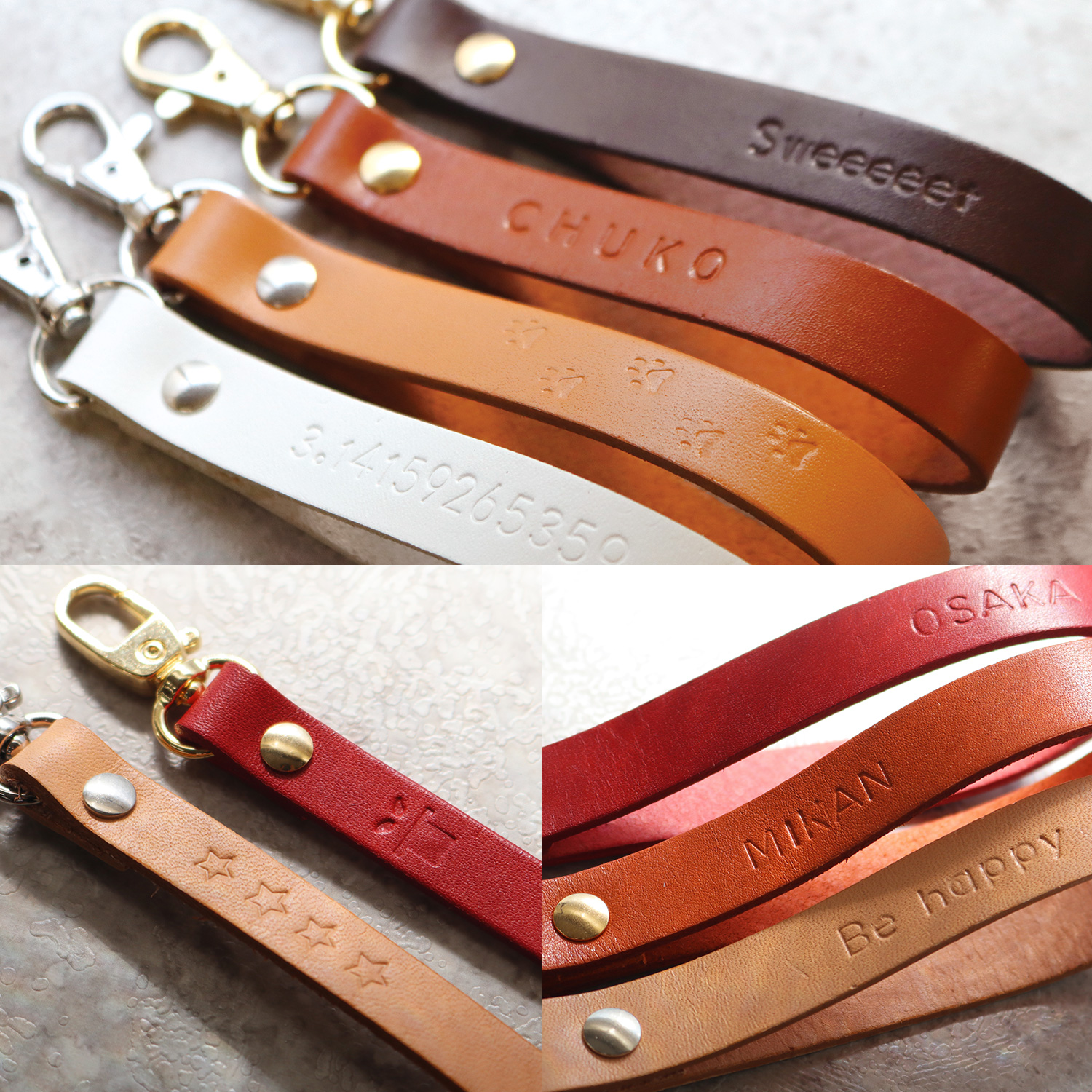 さまざまなレザーアイテムに刻印を入れることができます。