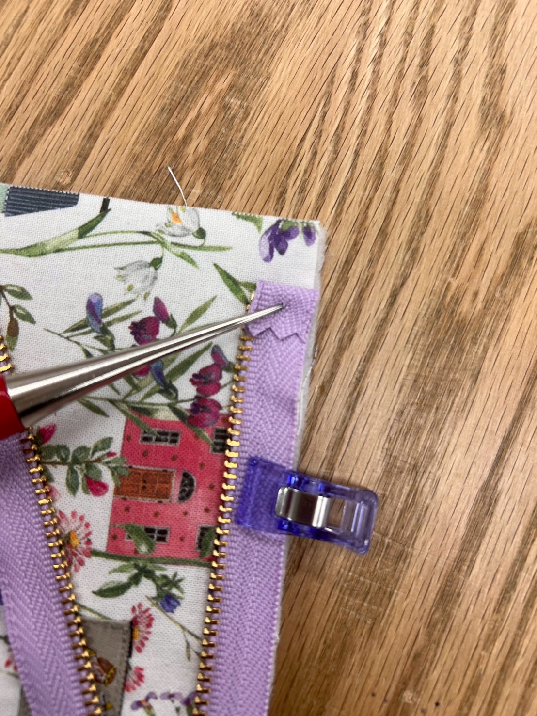 クリップや待ち針があると、固定が簡単です♪ポイントはこの下に!