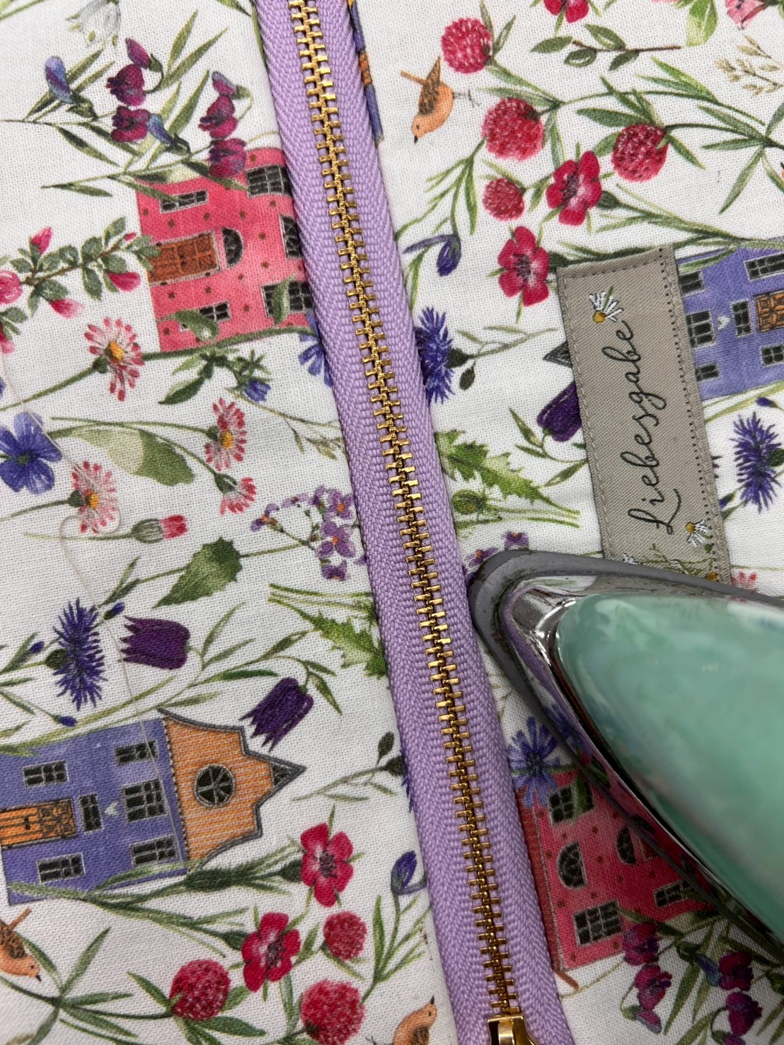反対側も③と同じように縫い付けた後、ファスナーを中心に手前に表生地が来るよう開きアイロンをあてて整える。