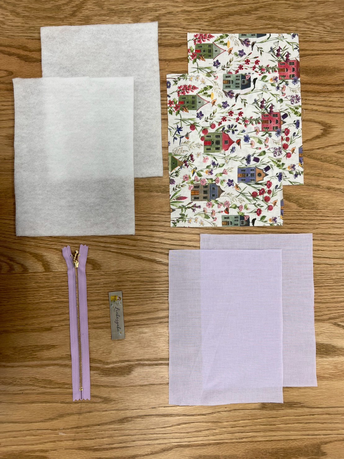 ②で作った表生地とファスナーを中表にして這わせ一度縫い、その上から裏生地を合わせて裏生地の上から縫う。