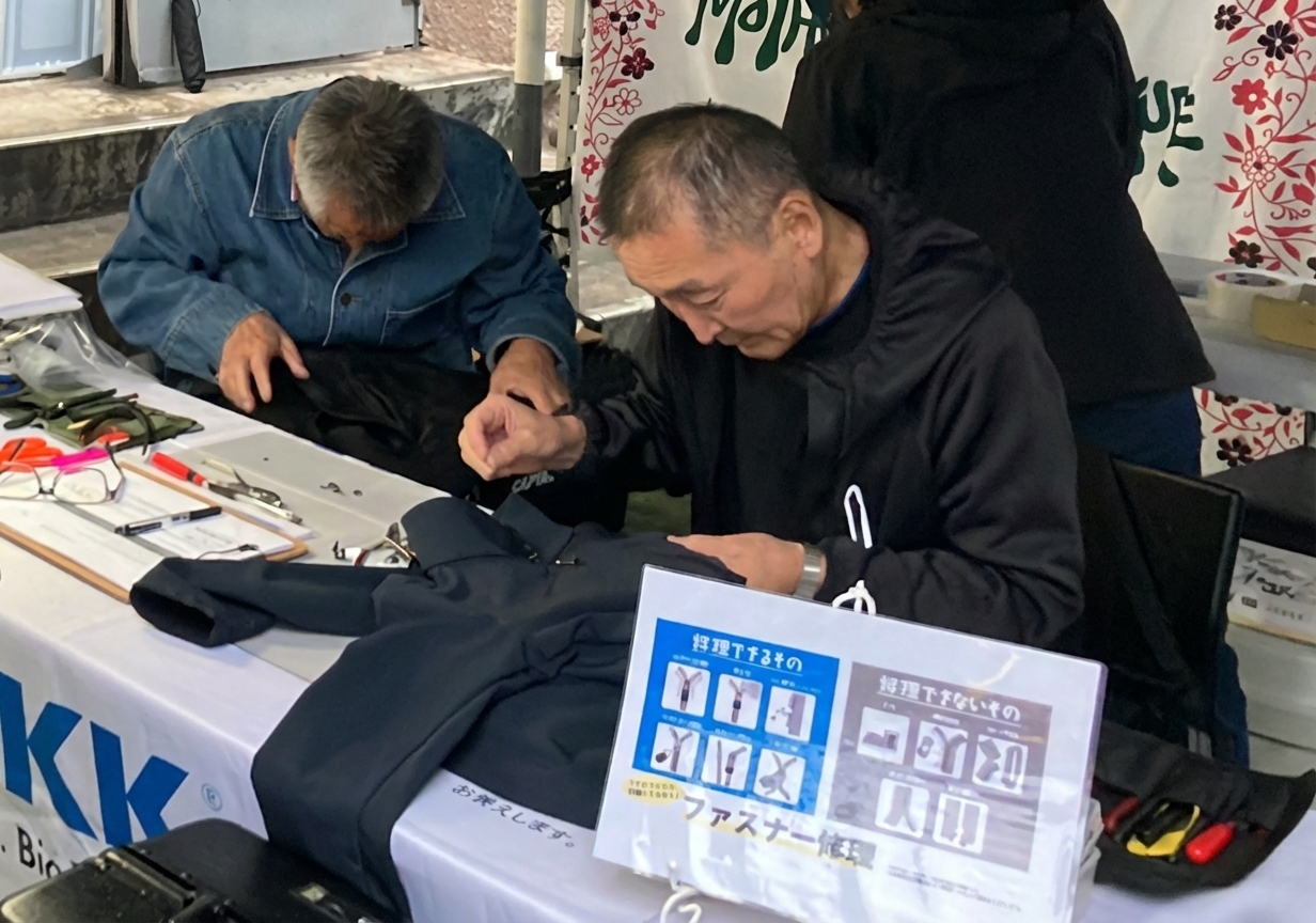 専門スタッフがその場で簡単な修理を行い、ファスナーの修復をサポートします。