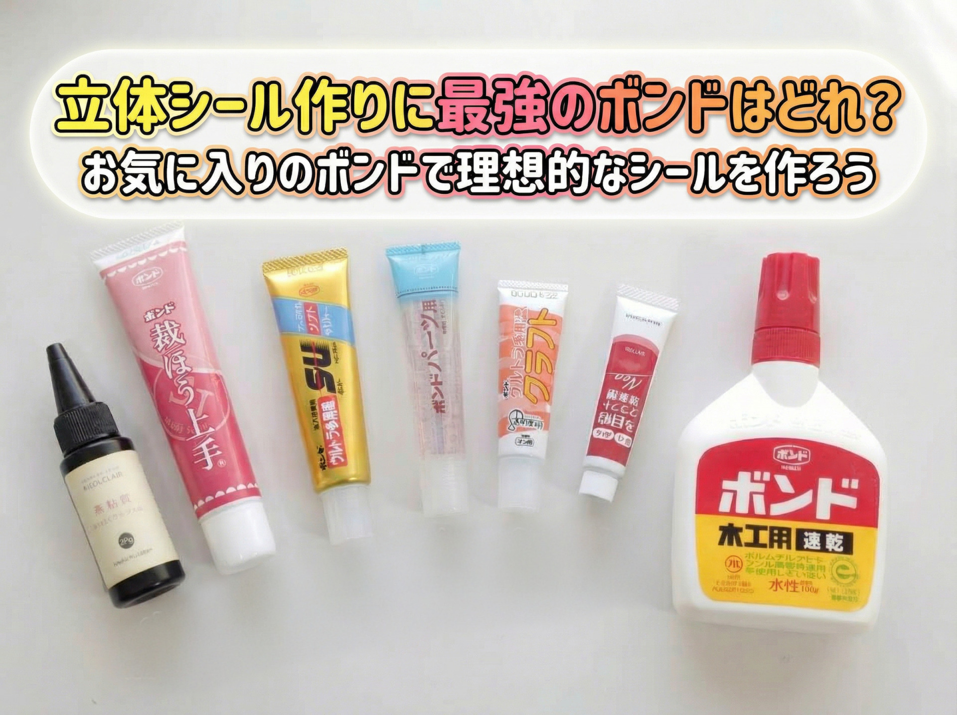 立体シール作成において最も重要なのは、ボンドの選択です。今回は、人気のボンド7種類を比較して、どのボンドが立体シール作成に最適かを徹底検証しました。シール作成に欠かせない立体感や仕上がり、乾燥時間などのポイントを踏まえ、ランキング形式でご紹介します。