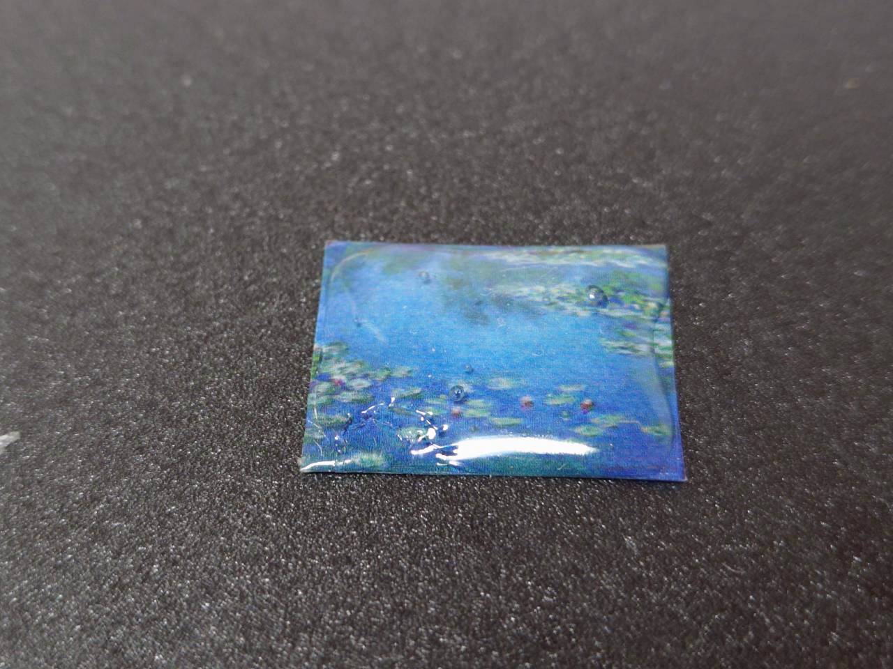 - シールに接着剤を塗る:まず、手持ちのシールの上に接着剤を慎重に塗ります。ノズルは細口を使うと作業がしやすいです。