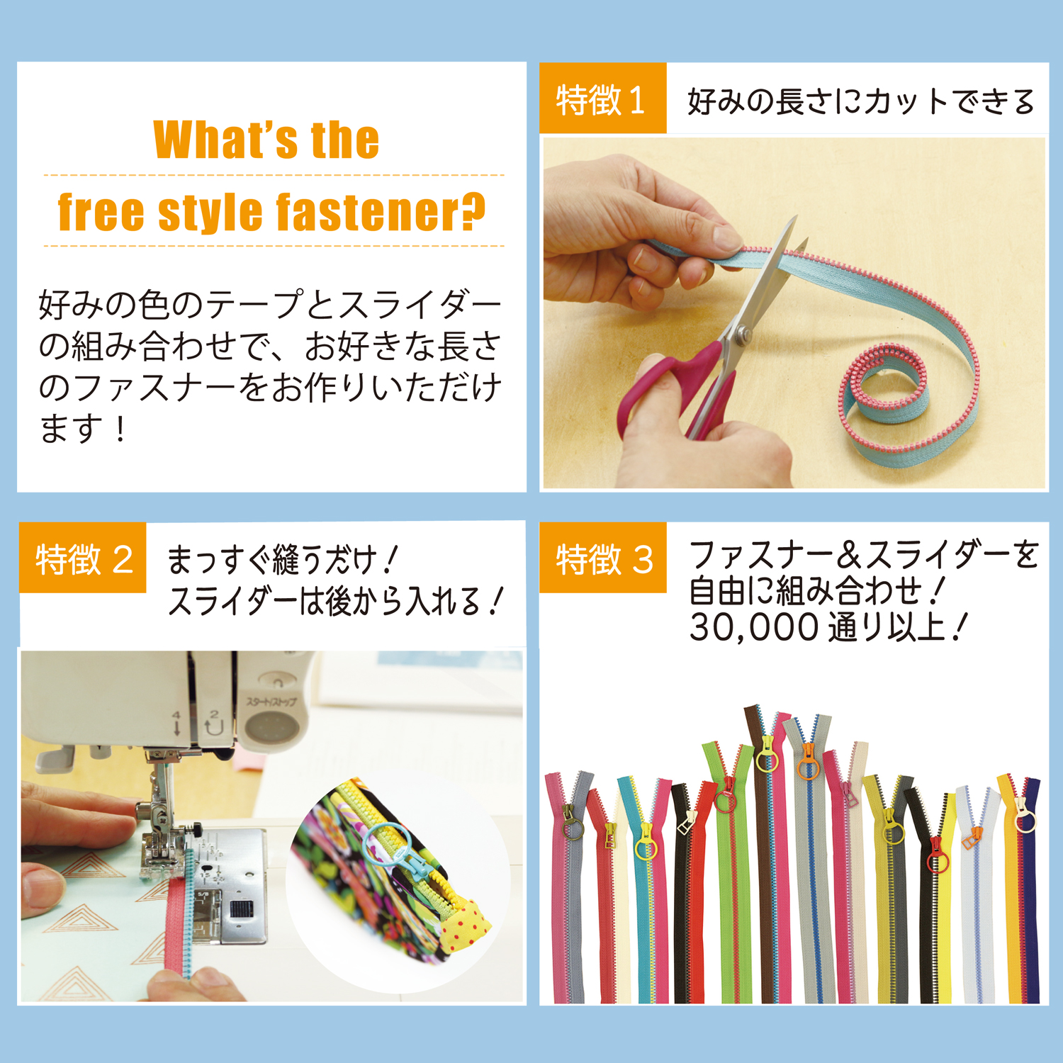 40種類のファスナーから色合わせを楽しみながら2つ選んで組み合わせてください!