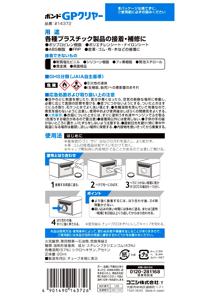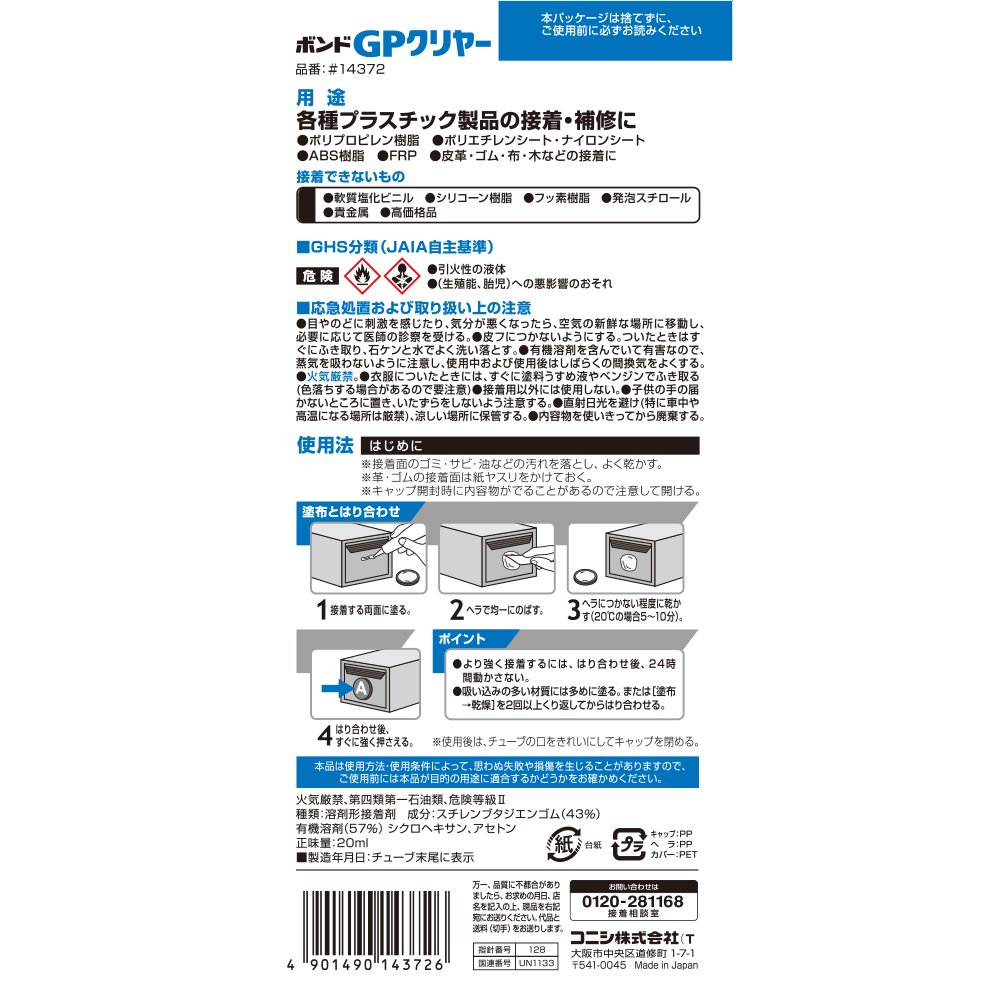 【年末年始】BON14372 ボンド GPクリヤー プラスチック用 20ml (個)