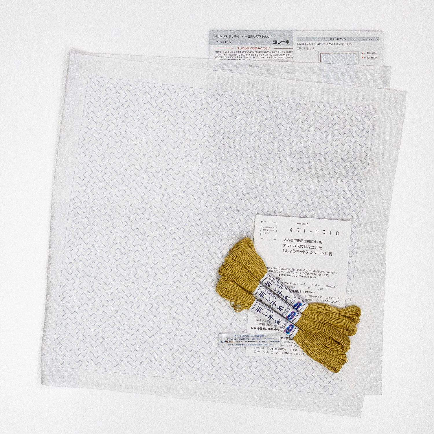 【Non-cancellable】 OLY-SK356 Sashiko Kit Hitomezashi Hanafukin Nagashi-Juji (pcs)
