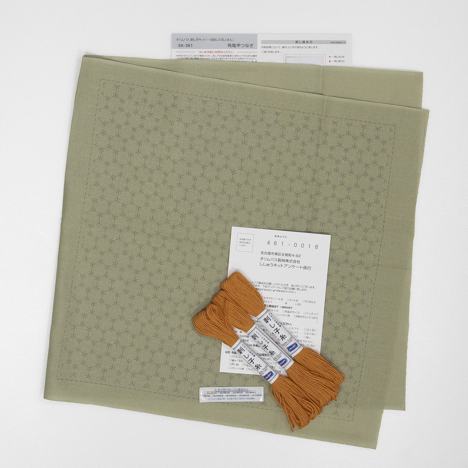 【Non-cancellable】 OLY-SK361 Sashiko Kit Hitomezashi Hanafukin Kaku-Kikko Tsunagi (pcs)