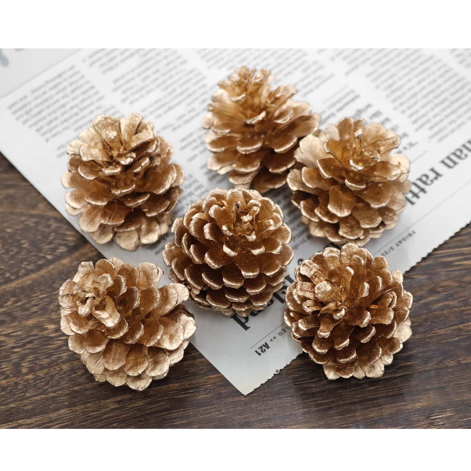 P9845-LG Limited Quantity! Natural Pine Cones [Gold] 6-Pack, 24-Pack (Bag)