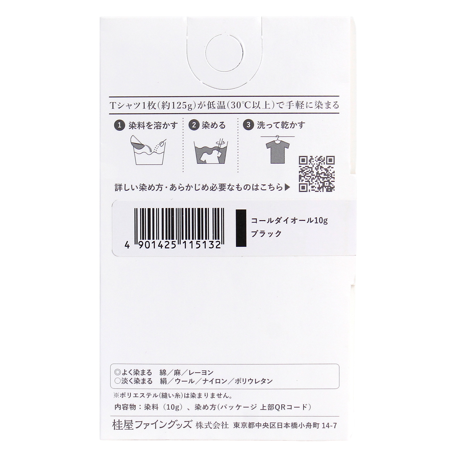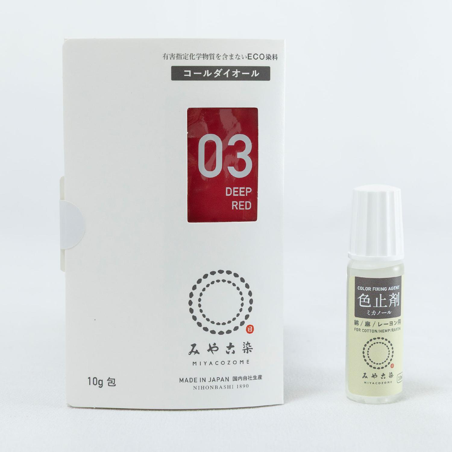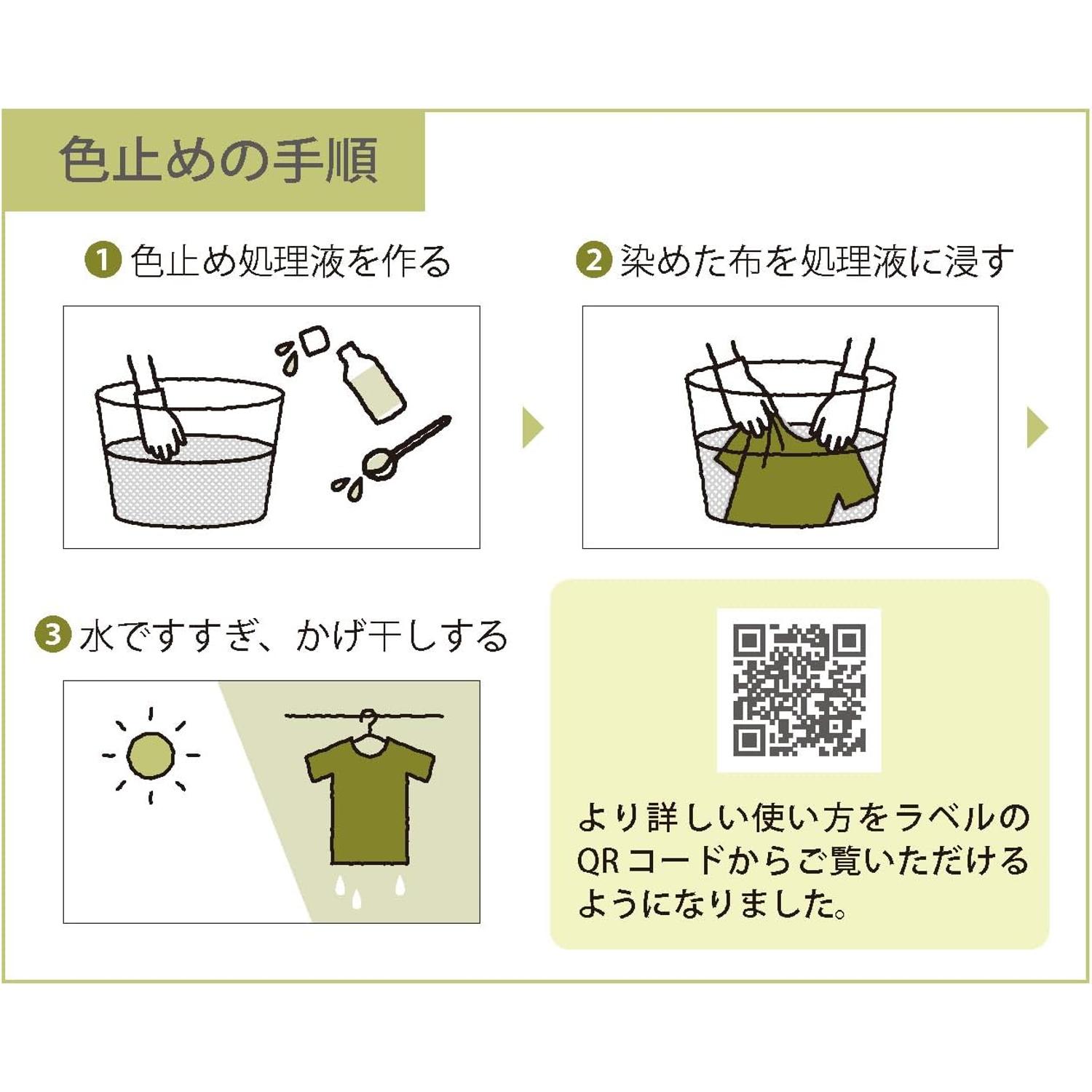 This is a set of dyes that can be easily dyed at low temperatures (above 30 degrees Celsius) and a color fixing agent that is used after dyeing cotton, linen, and rayon.